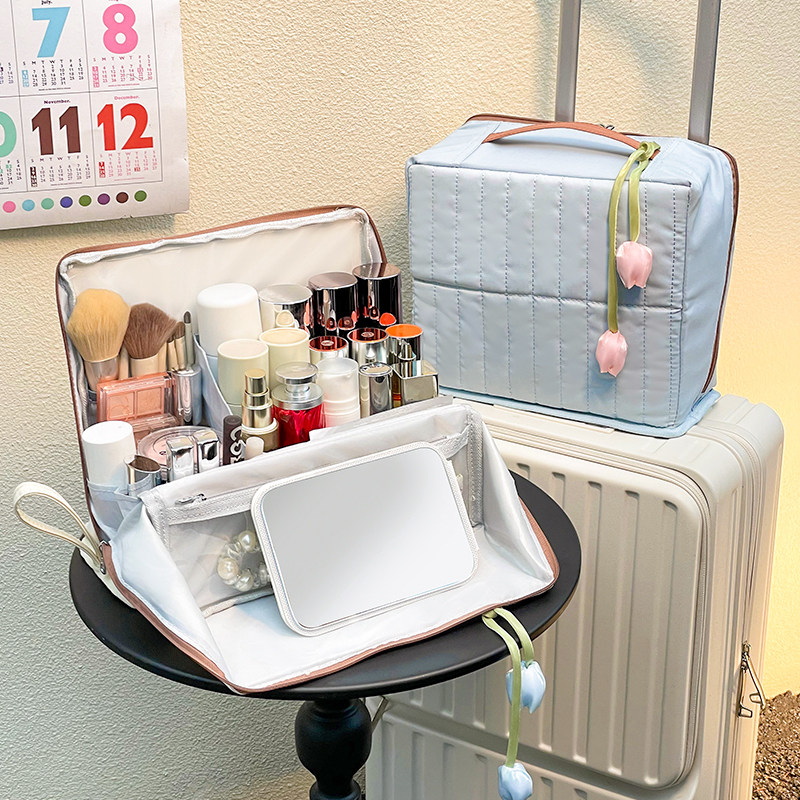 立式夹棉化妆包大容量可挂行李箱便携出差旅行洗漱包分区加厚防磕