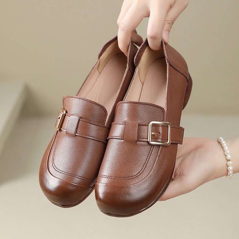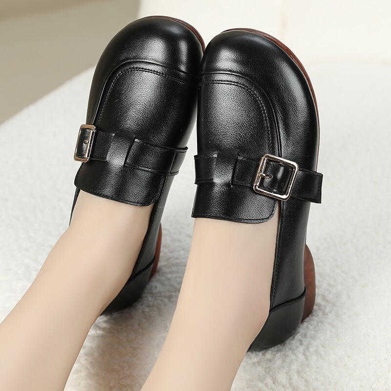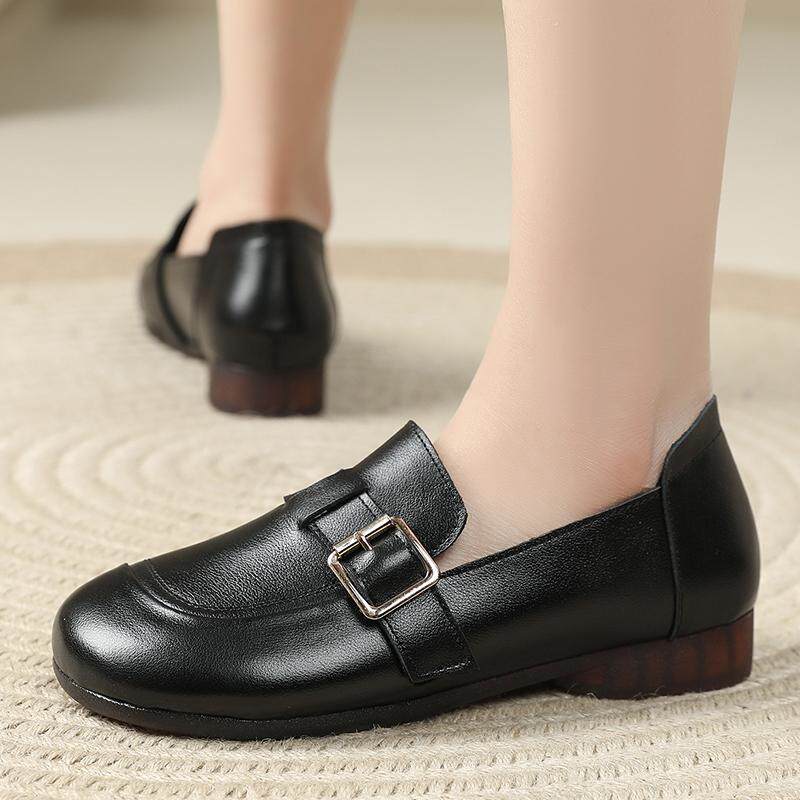 头层牛皮鞋子女乐福鞋春夏新款一脚蹬牛筋软底妈妈鞋真皮大码单鞋