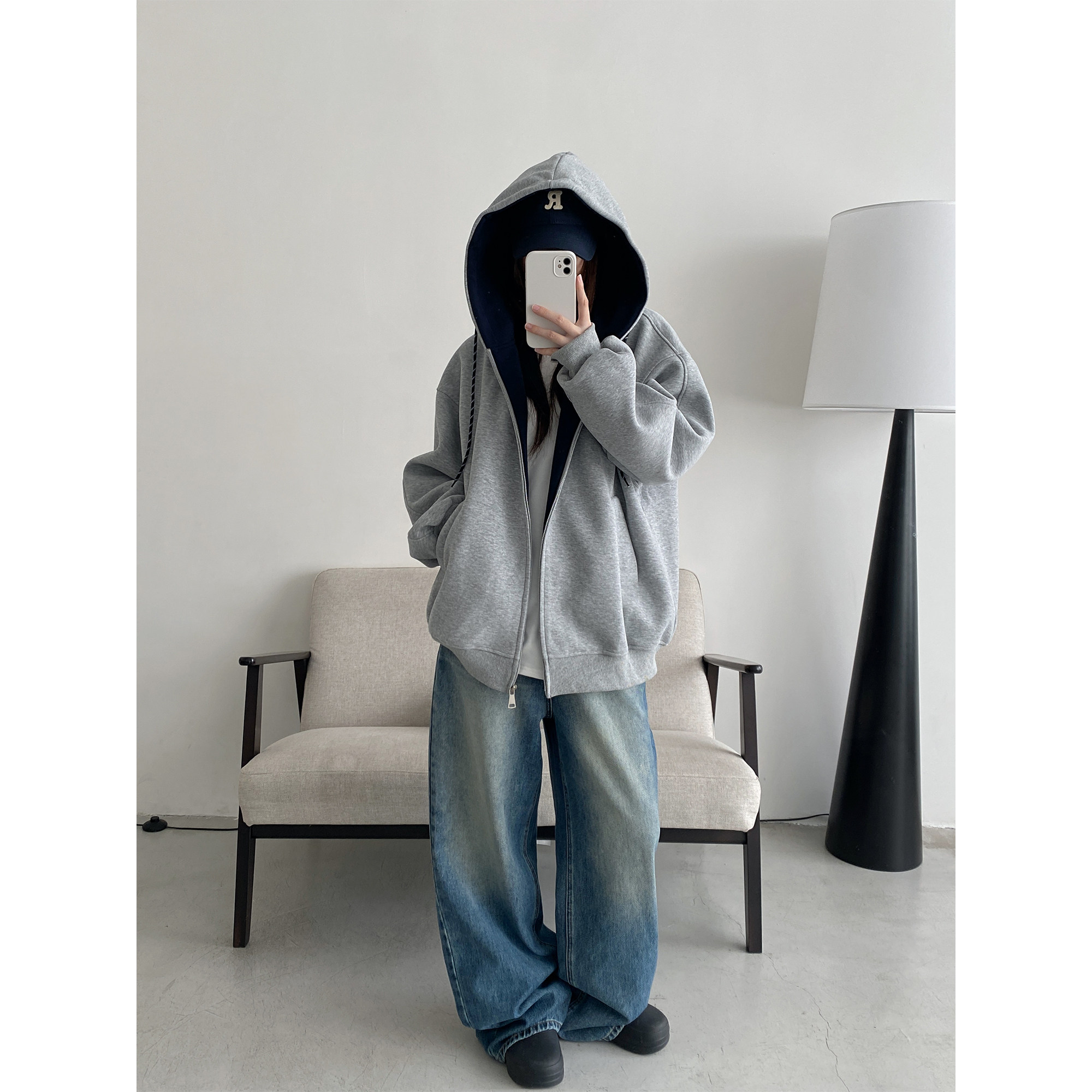 sun柚 美式春秋外套女款春秋2025新款流行百搭连帽宽松开衫卫衣