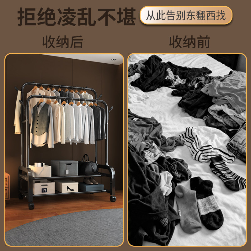 衣架落地卧室家用室内外挂衣杆子简易阳台收纳可移动式晾晒衣帽架