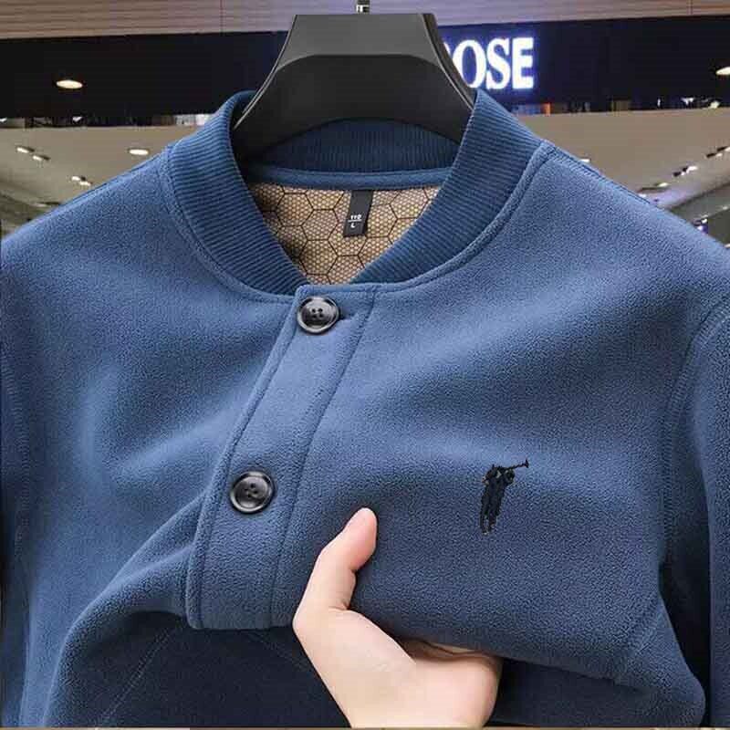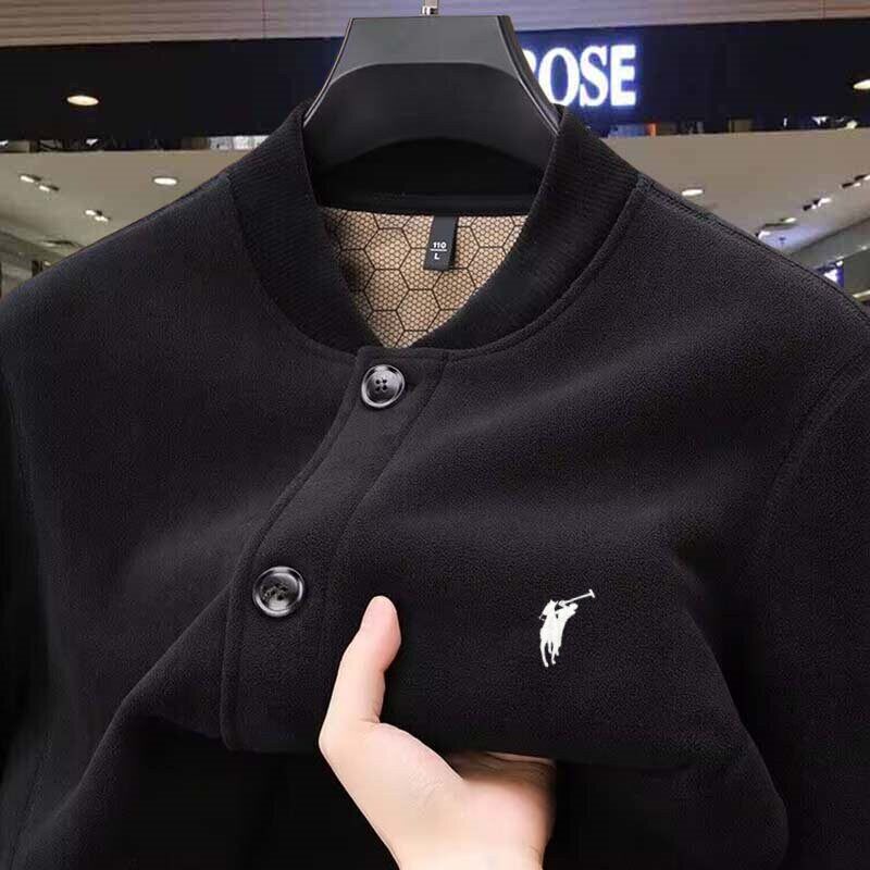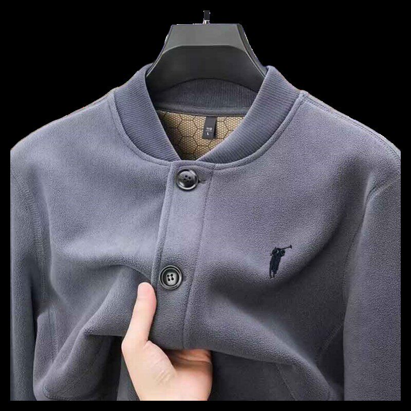 高端保罗摇粒绒外套男士春秋冬季休闲棒球领加绒加厚保暖夹克男款