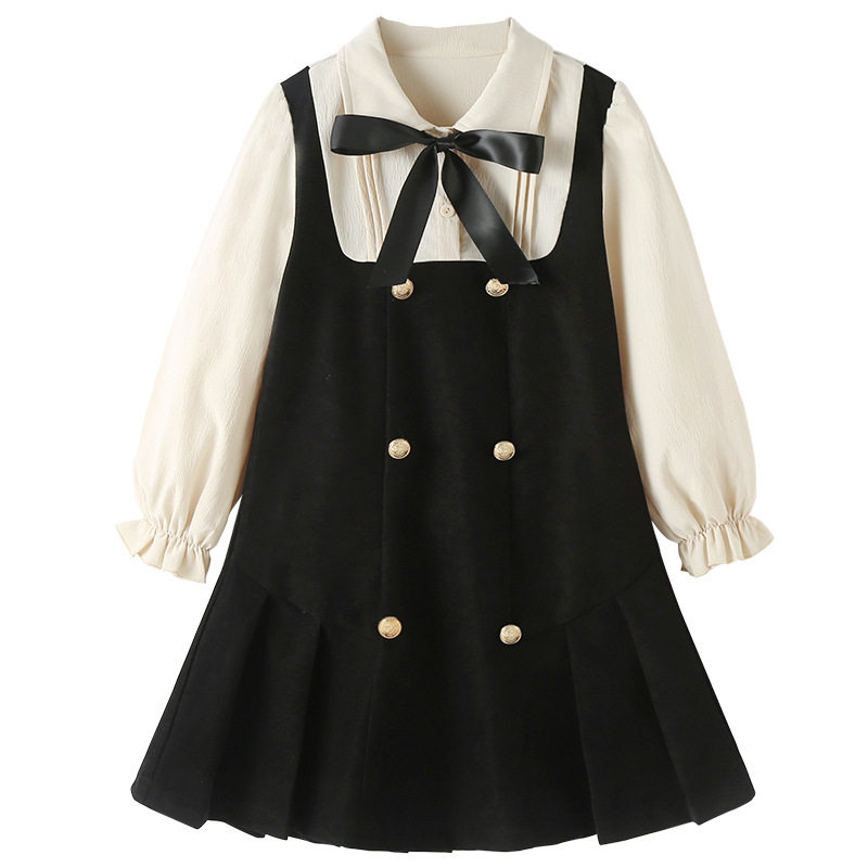 女童连衣裙春季2026新款洋气时尚学院风公主裙中大童假两件套