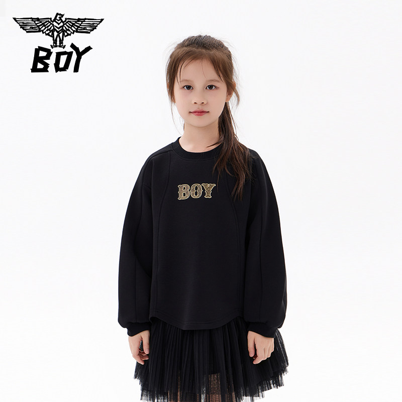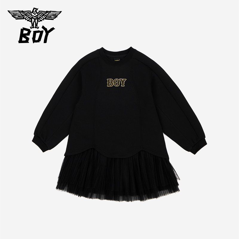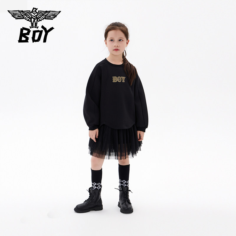 BOY童装 春秋季新款儿童连衣裙时尚潮酷网纱拼接裙子女童中大童