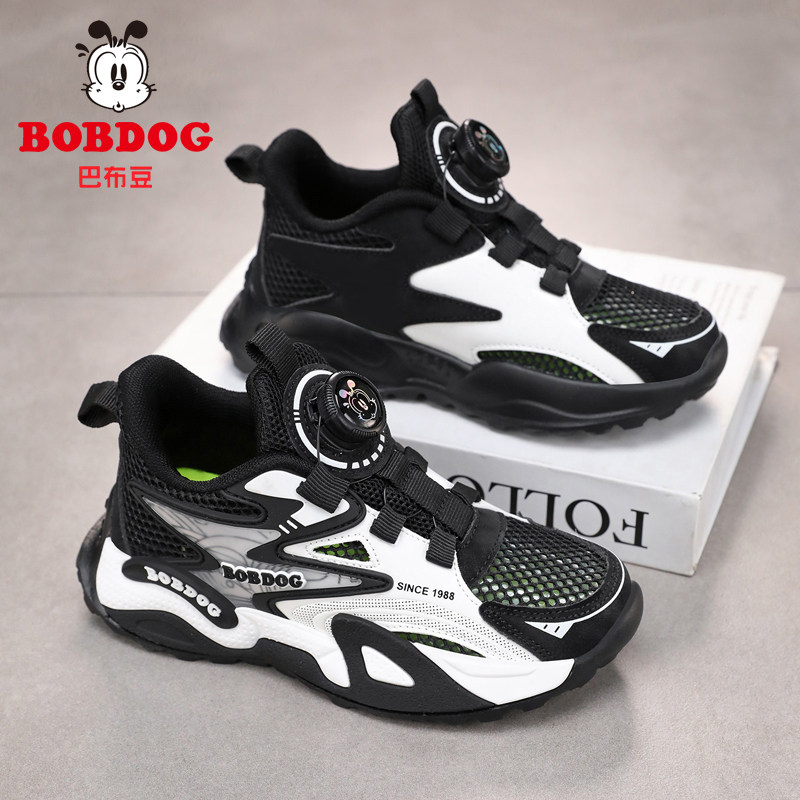 巴布豆男童鞋2026新款春夏季镂空单网透气运动鞋小学生防滑跑步鞋