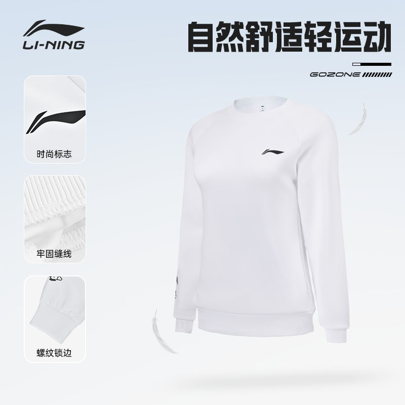 李宁官方正品羽毛球服女款运动休闲外套春秋圆领套头长袖上衣