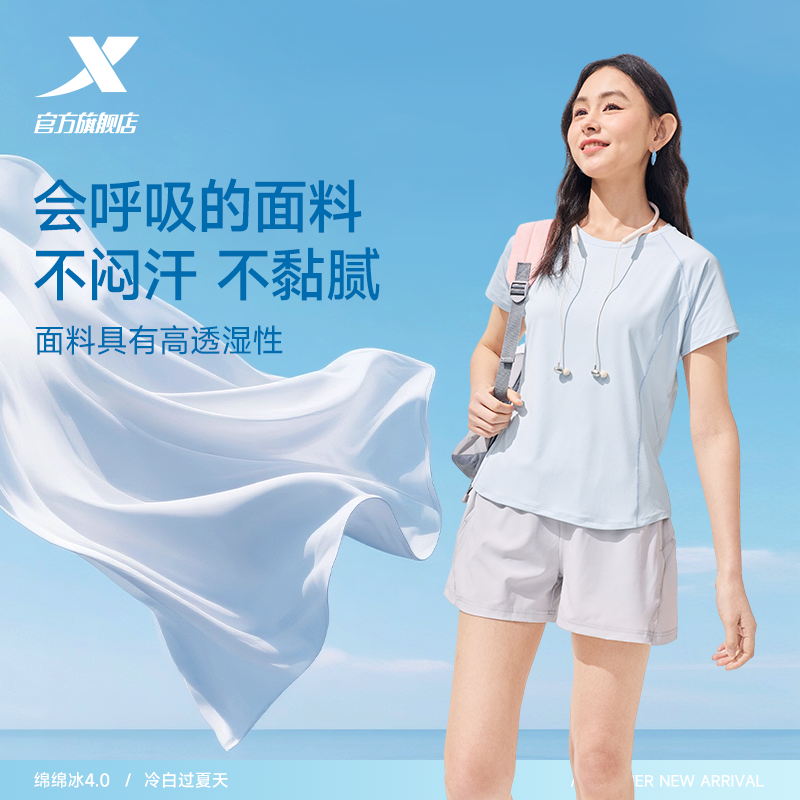 特步防晒短袖女2026年夏季新款瑜伽羽毛球服训练上衣运动冰丝T恤