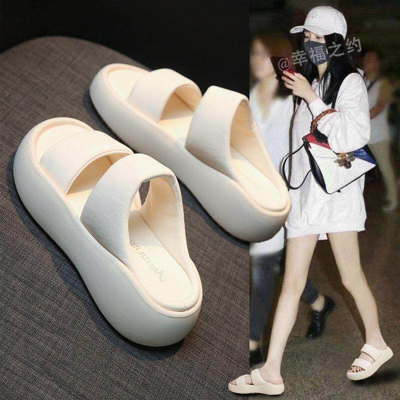 香港真皮厚底凉拖鞋女夏季外穿2026新款高级感时尚踩屎感沙滩凉鞋