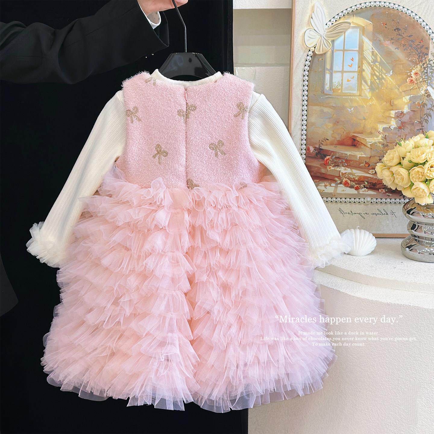 女童加绒连衣裙冬装儿童生日公主裙洋气蓬蓬纱裙高级感小香风礼服