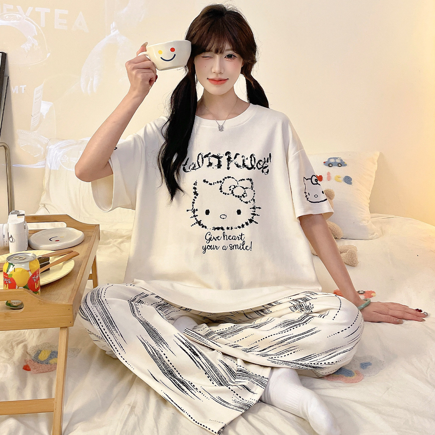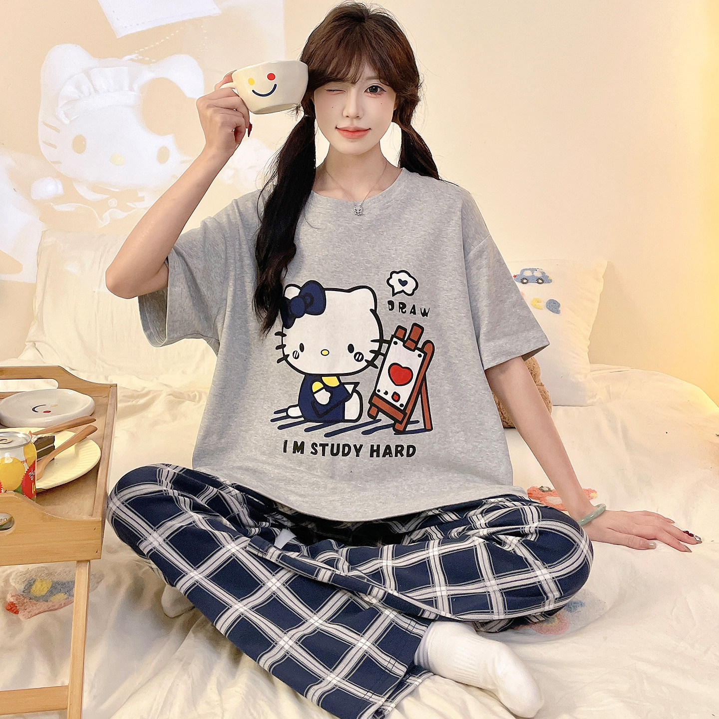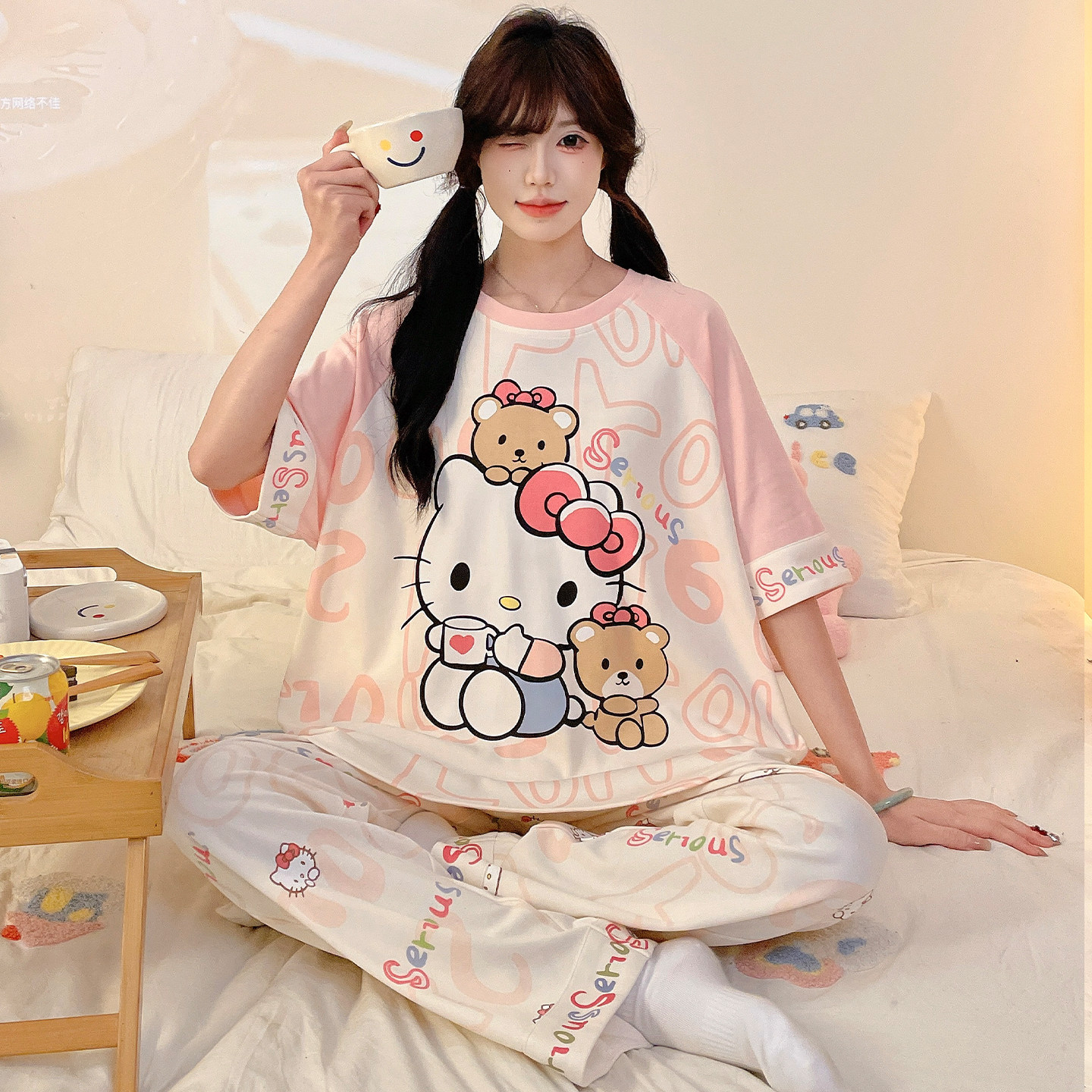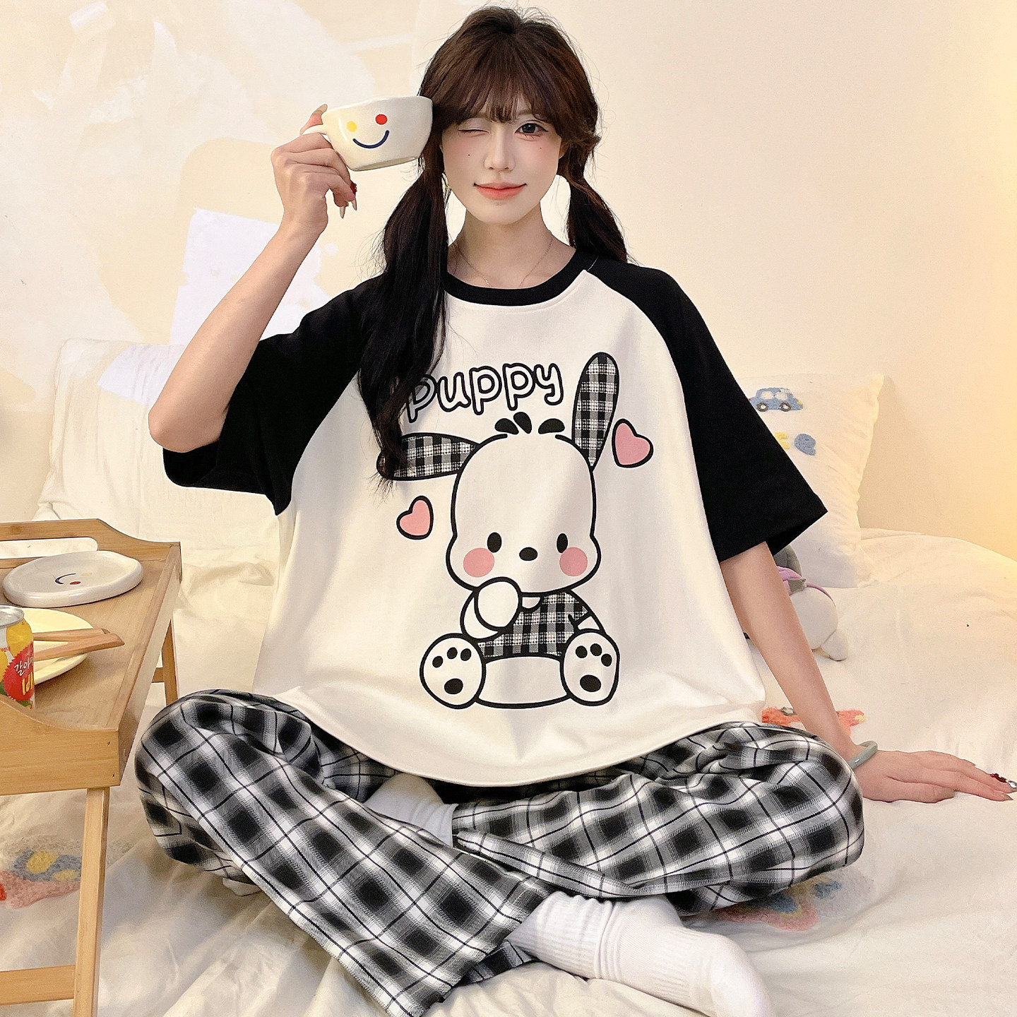 纯棉睡衣女孩青少年卡通可爱长裤夏季初中学生大童短袖家居服套装