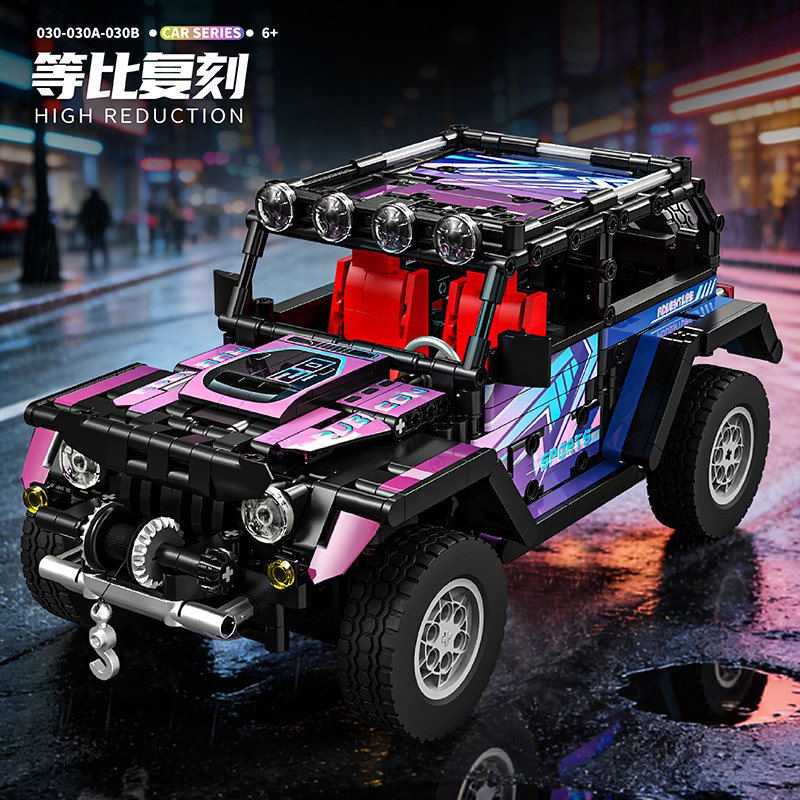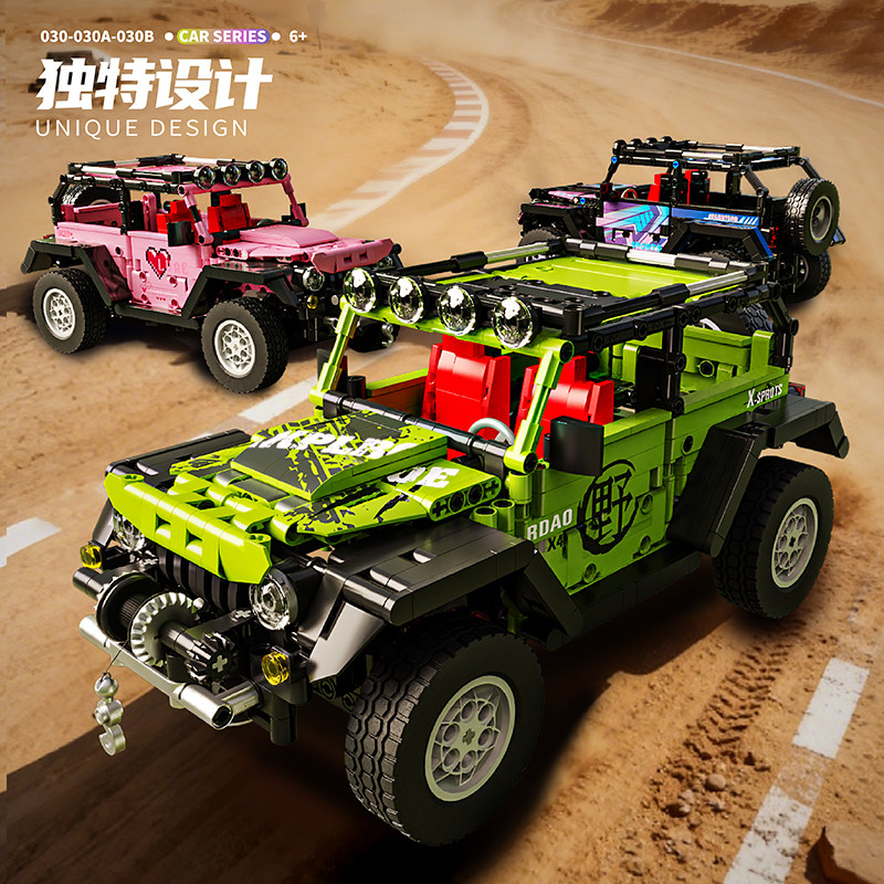 中国积木牧马人越野车积木jeep吉普遥控汽车拼装模型男孩益智玩具