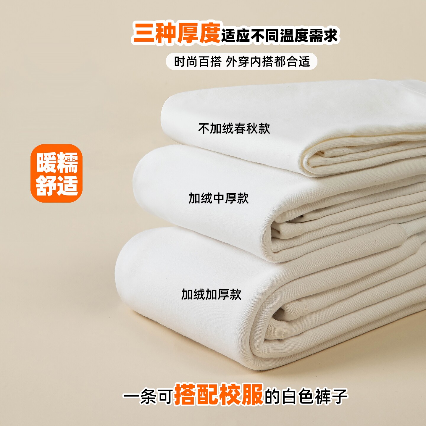 白色女童加绒打底裤儿童秋装外穿纯棉裤子中童女宝加厚长裤保暖裤