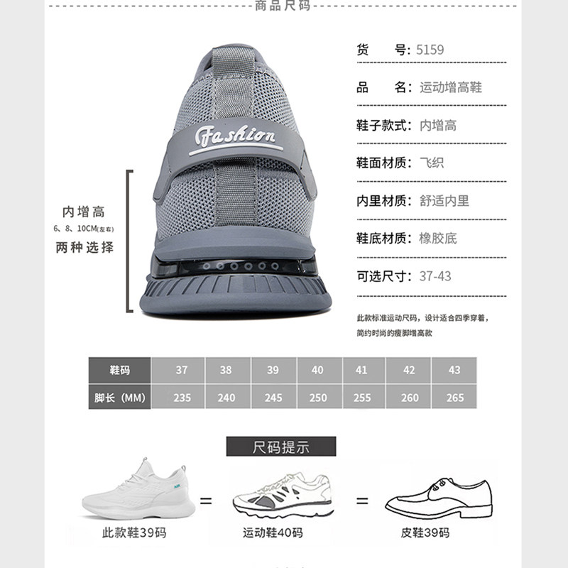 夏季增高鞋10cm男士透气网面内增高隐形休闲运动潮流软底男鞋7cm