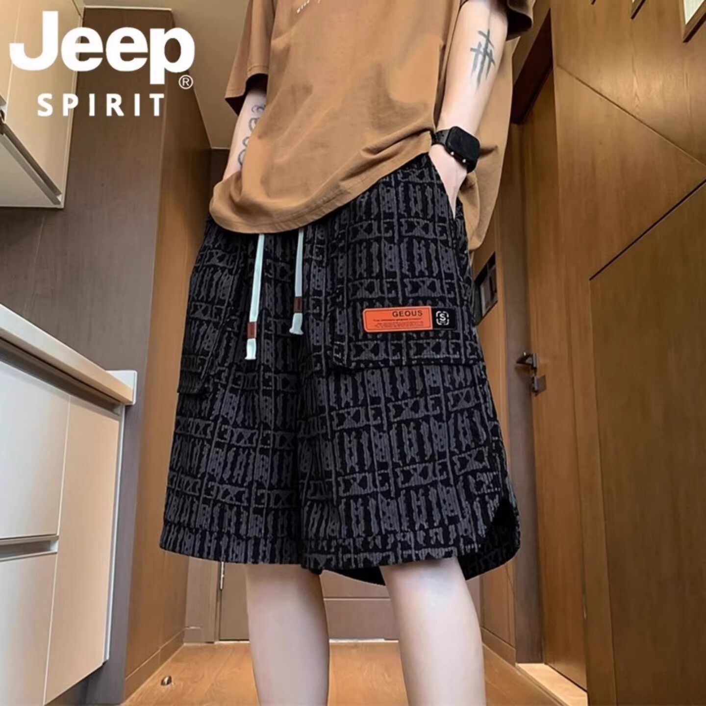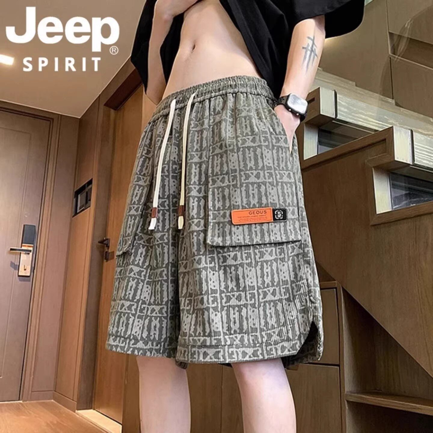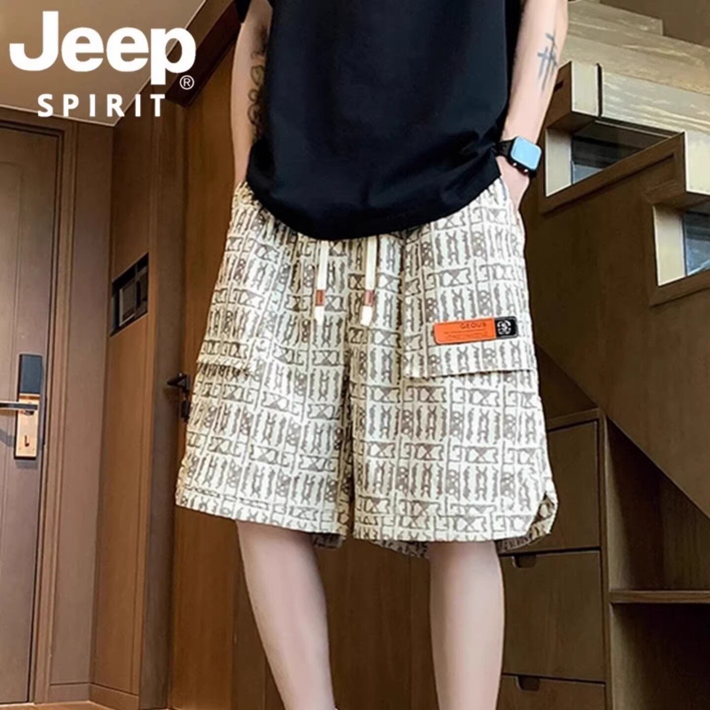 JEEP SPIRIT吉普夏季宽松大口袋休闲工装五分短裤男款青春活力风