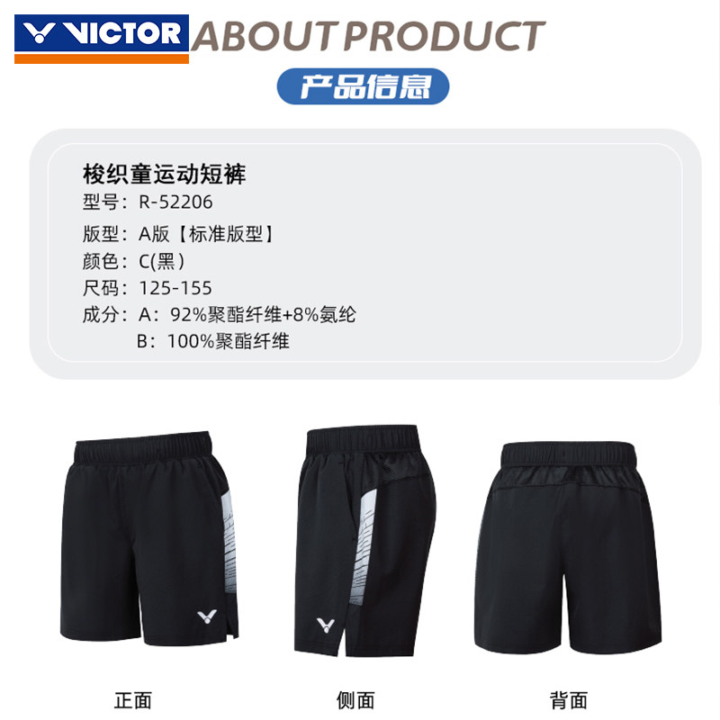 VICTOR威克多胜利羽毛球服青少年易干吸汗儿童运动短裤R-52206