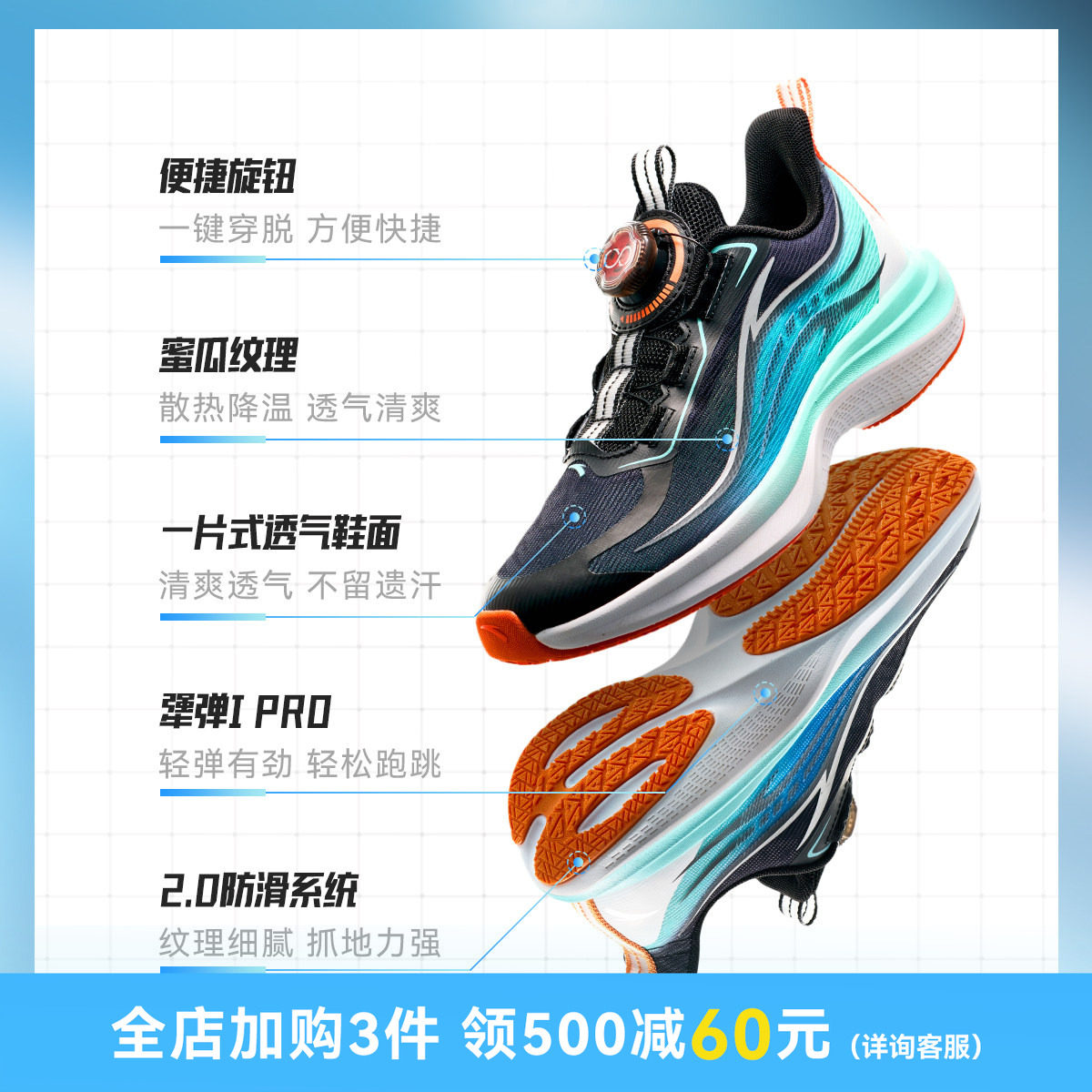 安踏儿童氢跑2.0跑鞋运动鞋男童夏季款旋钮跑鞋男大童专业跑步鞋
