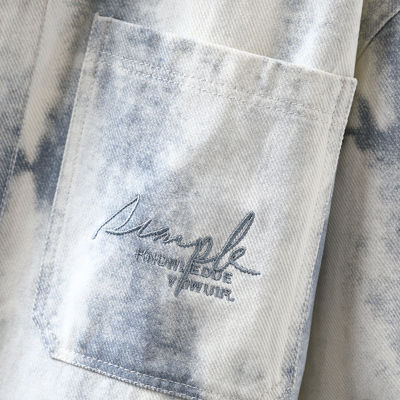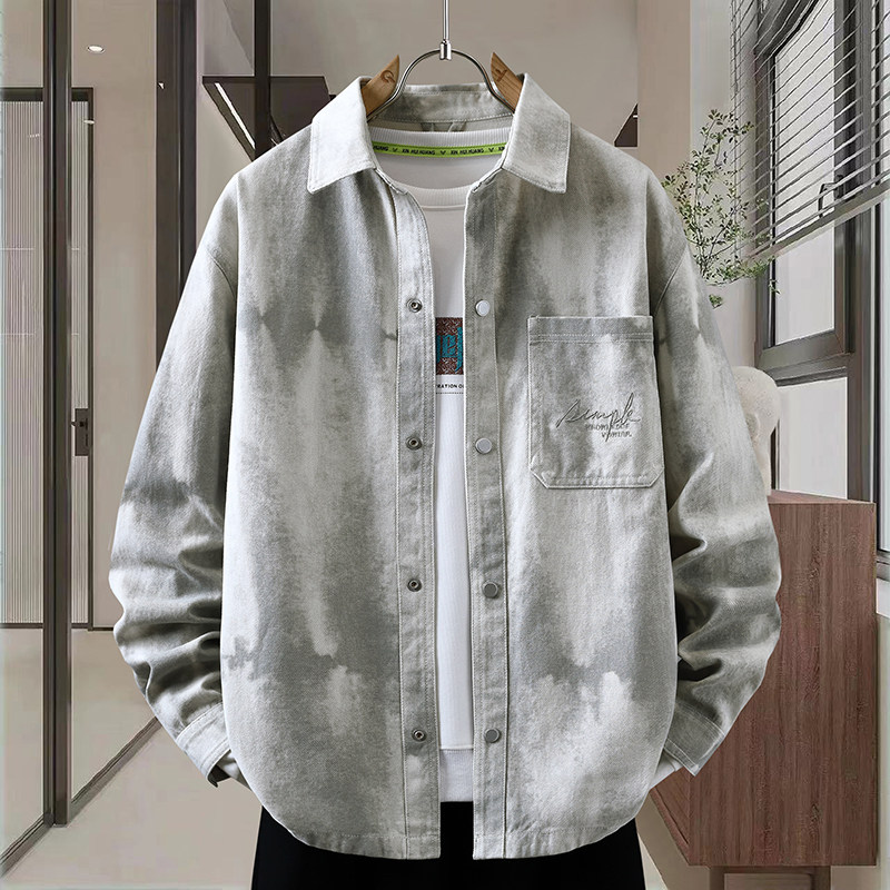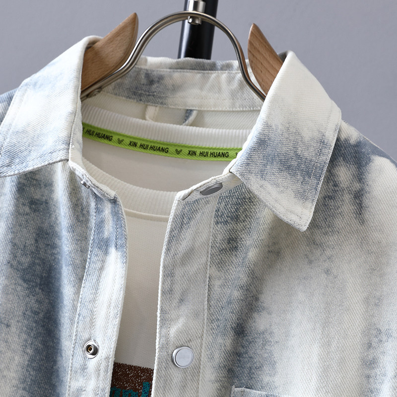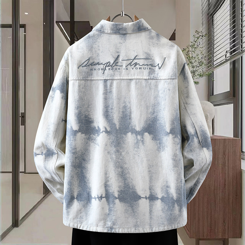 青少年长袖衬衫男春秋季高级感痞帅扎染牛仔外套男款宽松休闲夹克