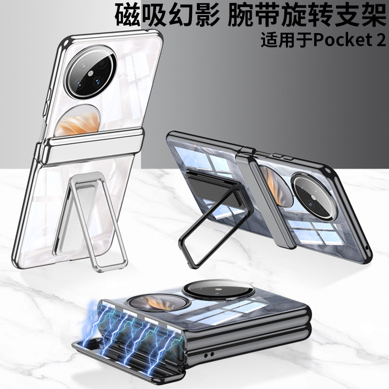 适用华为pocket2手机壳新款保护套小折叠屏全包中轴防摔高级透明超薄带支架镜头外壳高端时尚折叠轻奢高级感