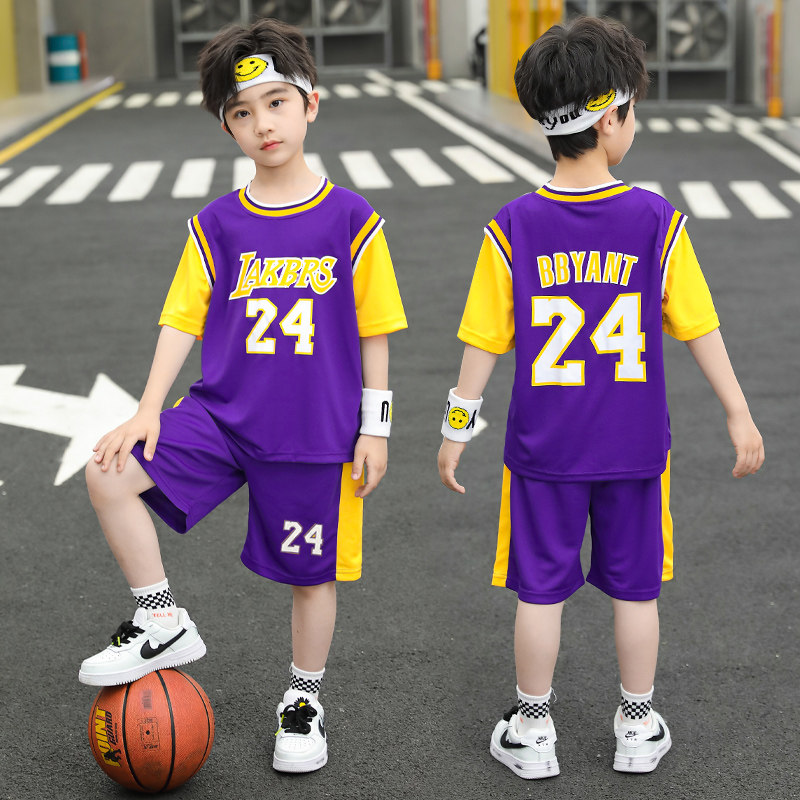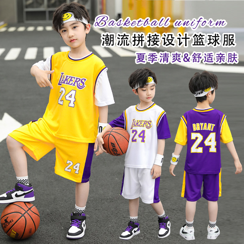 儿童篮球服套装速干男童24号短袖球衣湖人科比夏季薄款运动训练服