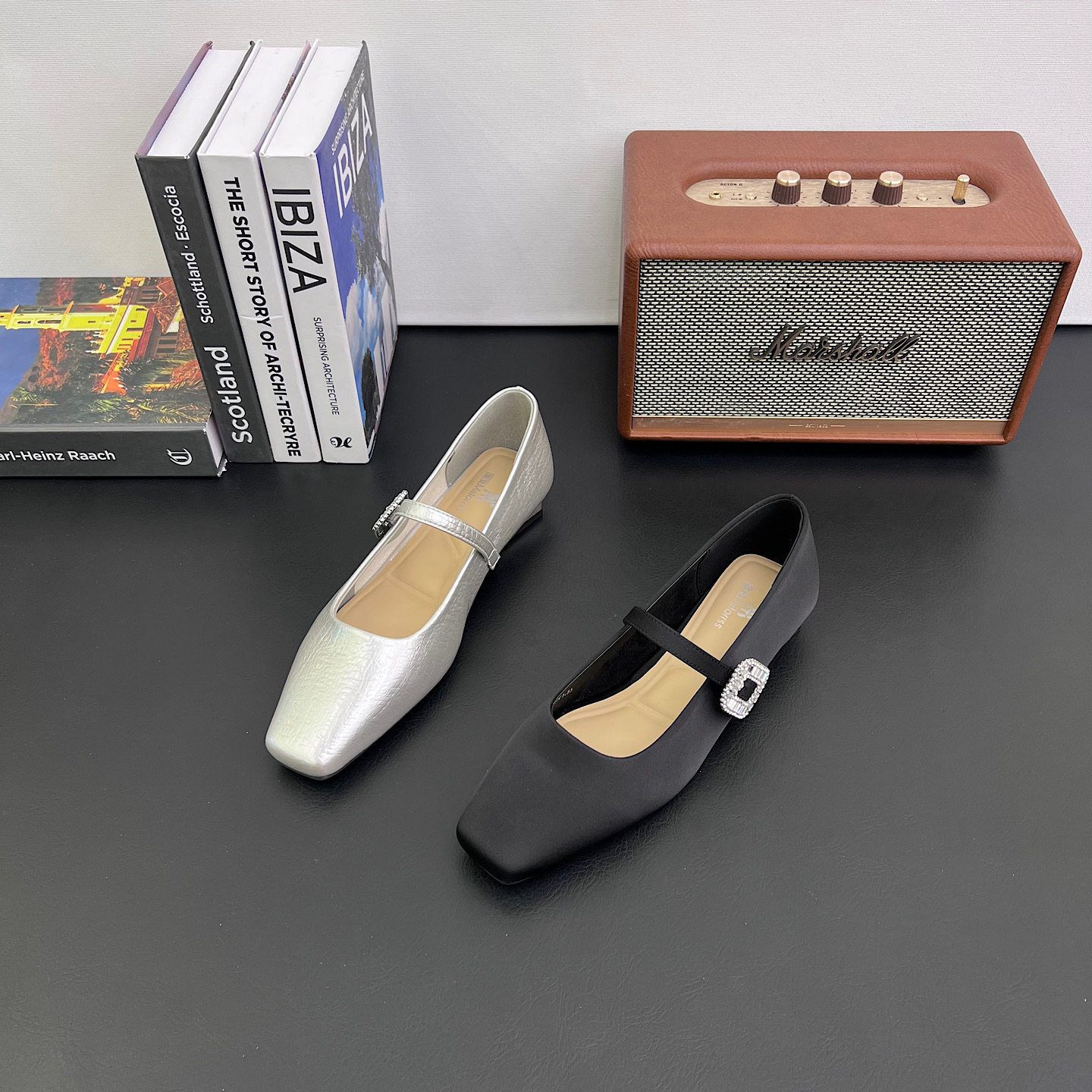 法式晚晚风水钻方头浅口单鞋女2026春季新款小低跟配裙子玛丽珍鞋