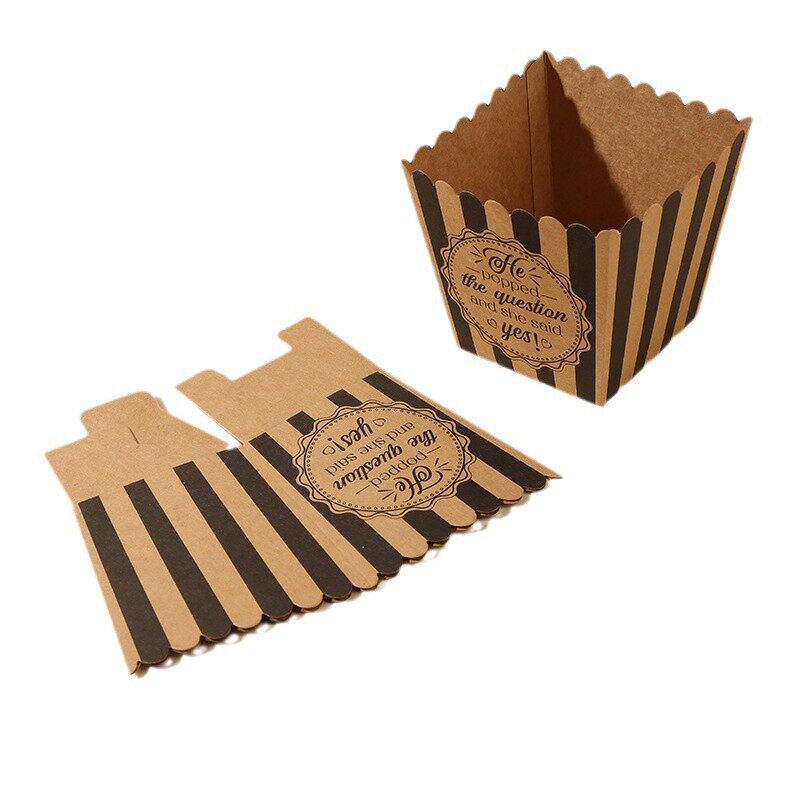一次性爆米花杯子可折叠食物盒食品级打包盒小号烘焙方形牛皮纸盒
