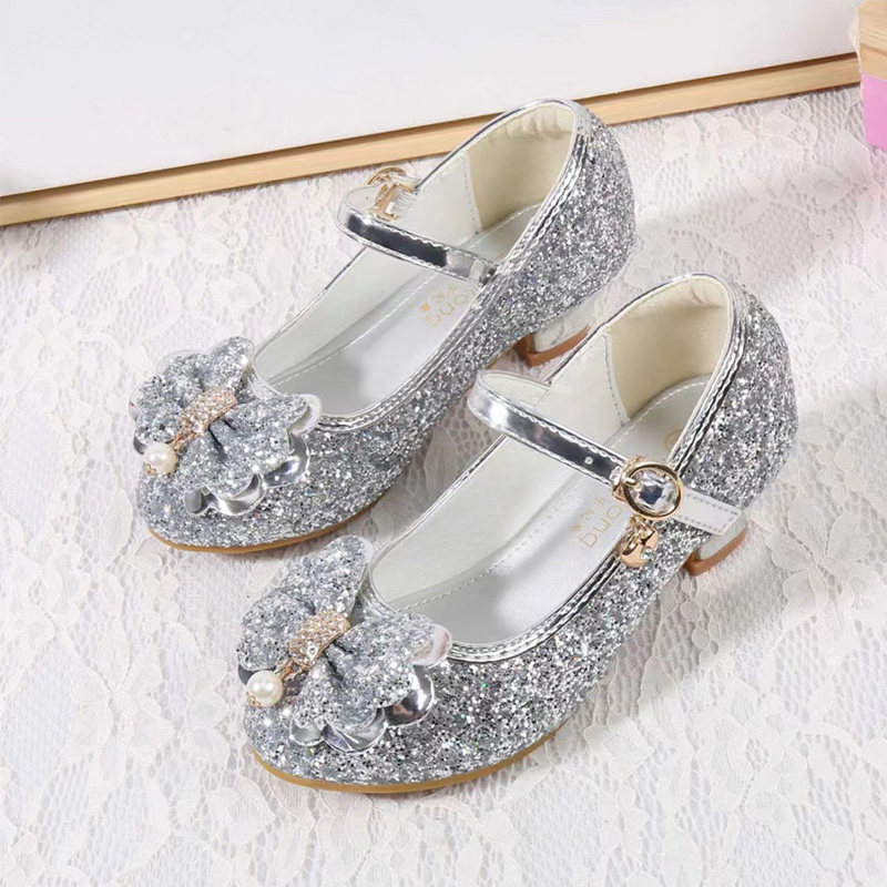 女童公主鞋2026新款高跟水晶软底小女孩艾莎金色皮鞋配裙子儿童鞋
