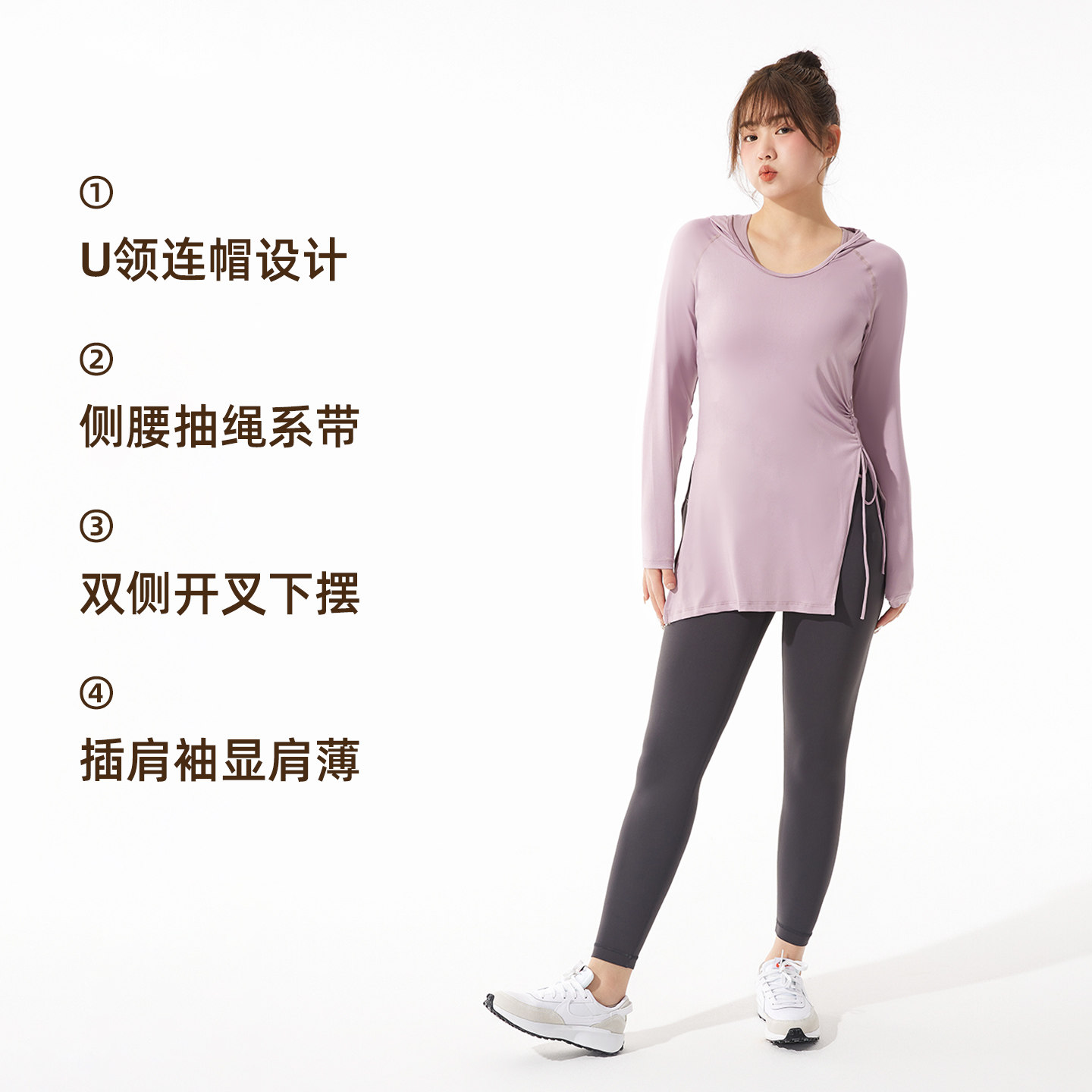 健身服女大码运动上衣2026春季连帽修身长袖速干衣胖mm瑜伽服套装