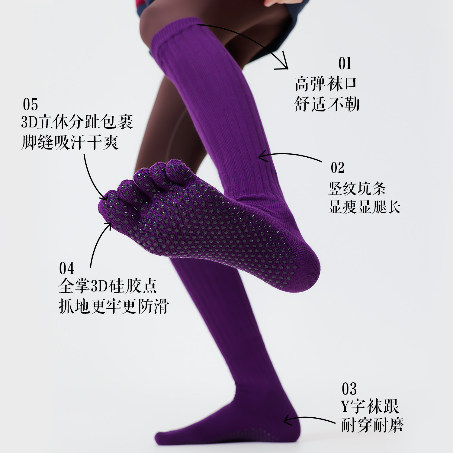 311线报网描述:普拉提瑜伽分趾五指袜/硅胶防滑/长筒堆堆