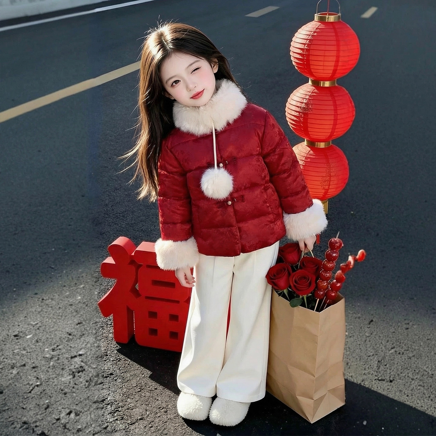女童棉服2026新款冬装儿童洋气时髦爆款羽绒棉袄冬款女孩红色外套