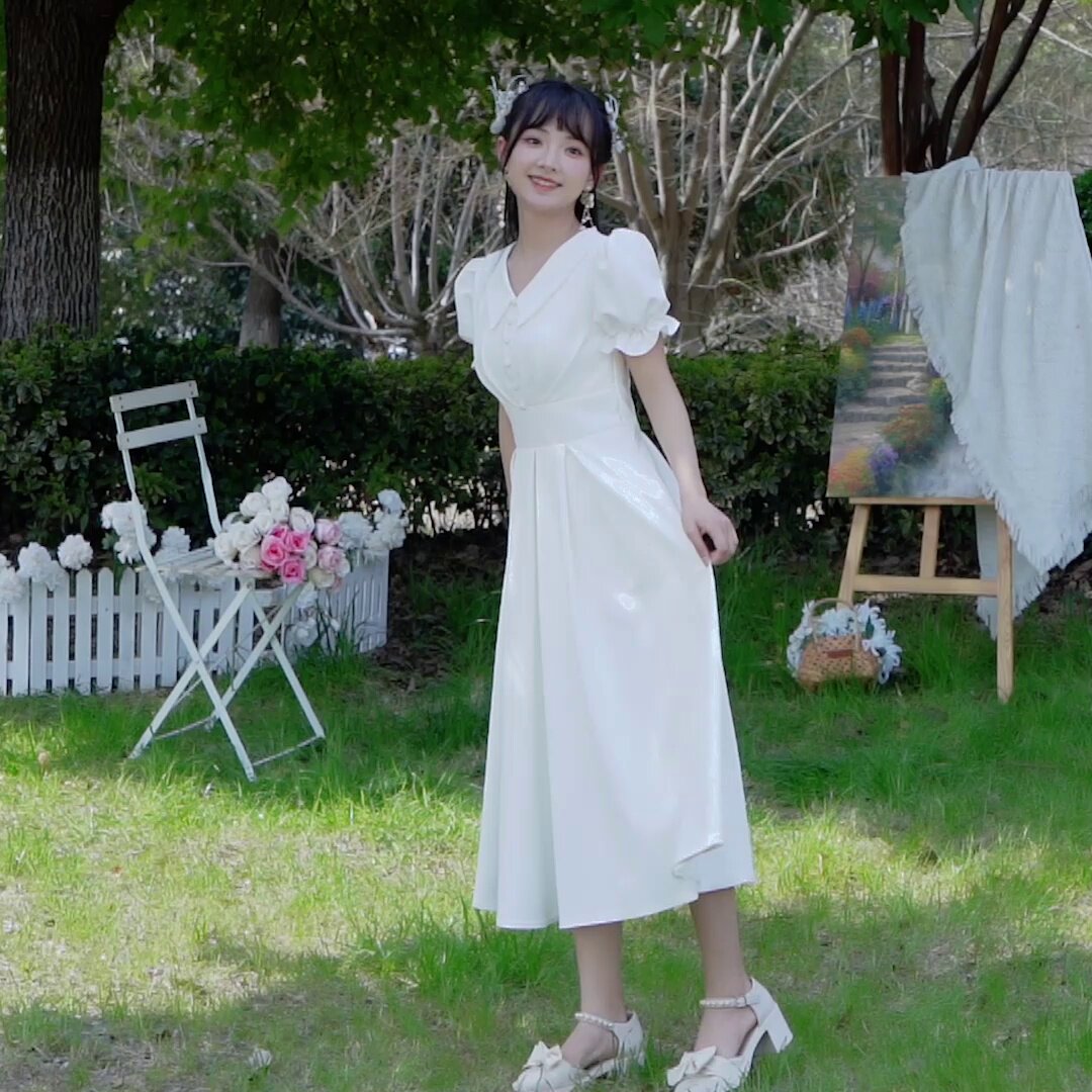 法式白色连衣裙女高级感夏季领证登记小白裙轻礼服日常可穿小个子