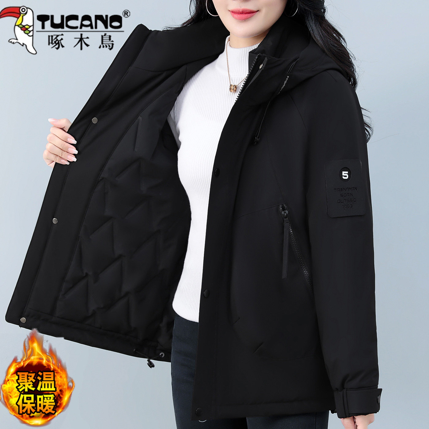 啄木鸟羽绒棉服女士冬季2025新款加厚中年妈妈棉衣冲锋衣保暖外套