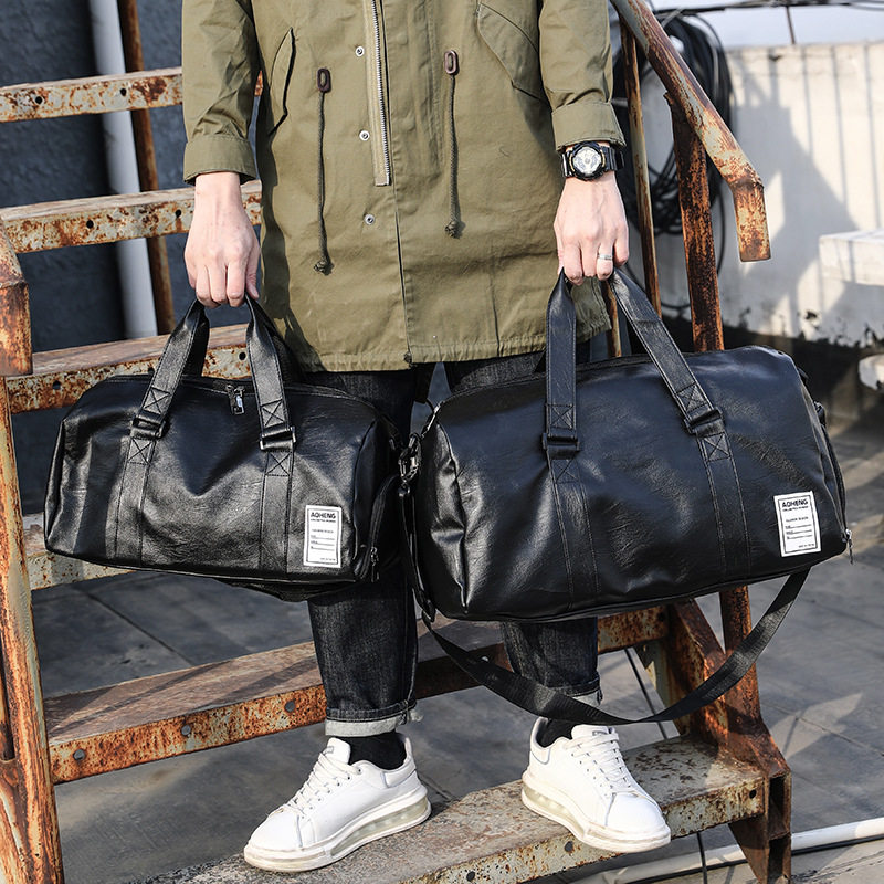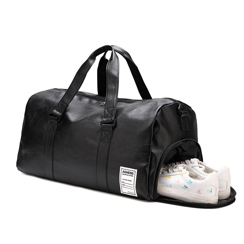 外贸男女独立鞋位运动PU皮健身包干湿分离单肩短途旅游手提包