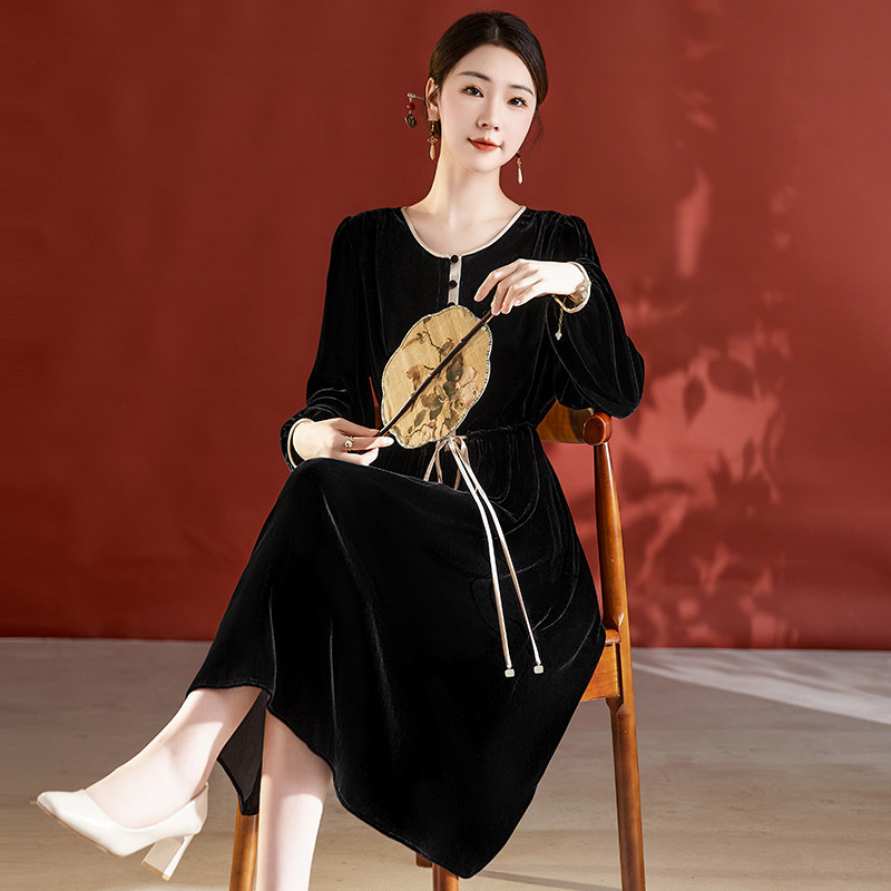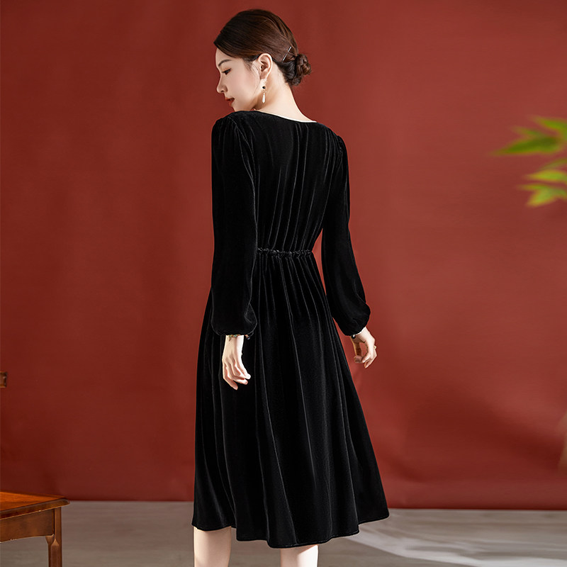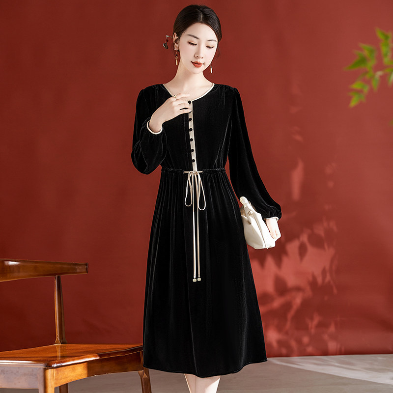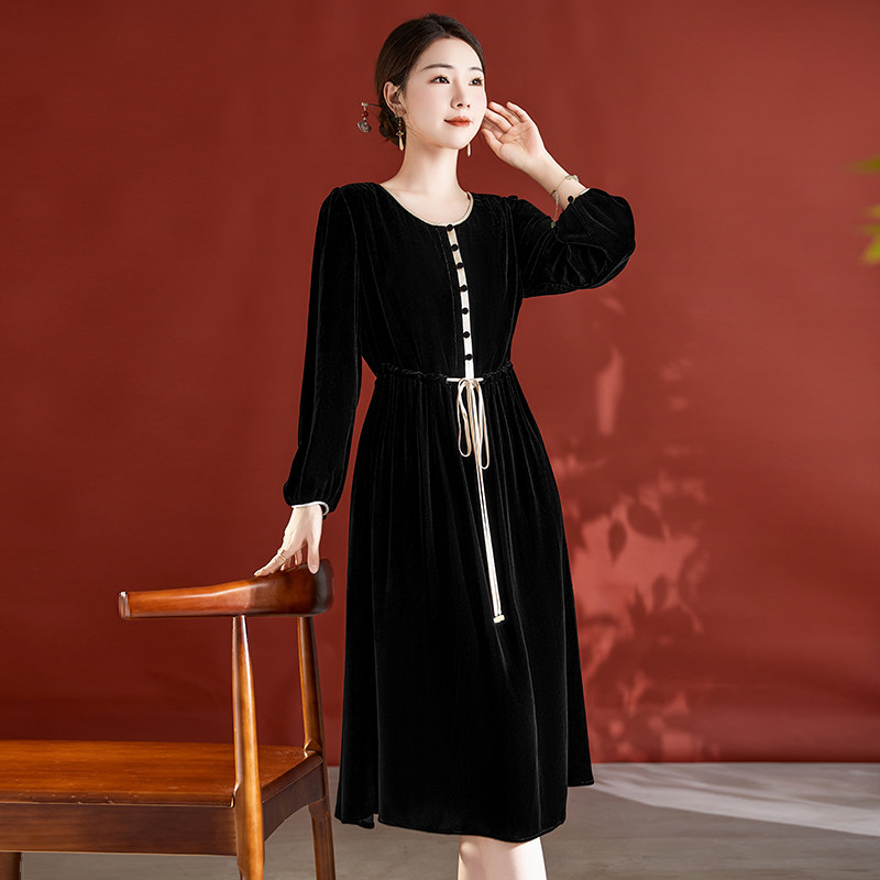 311线报网描述:包边圆领,真丝素绉缎拼接,包边袖口