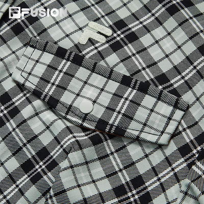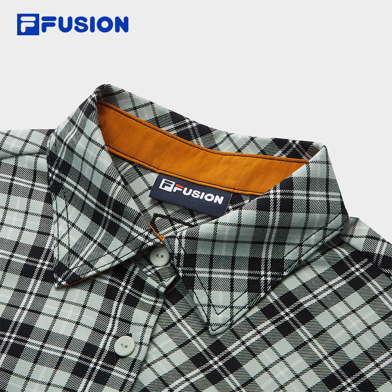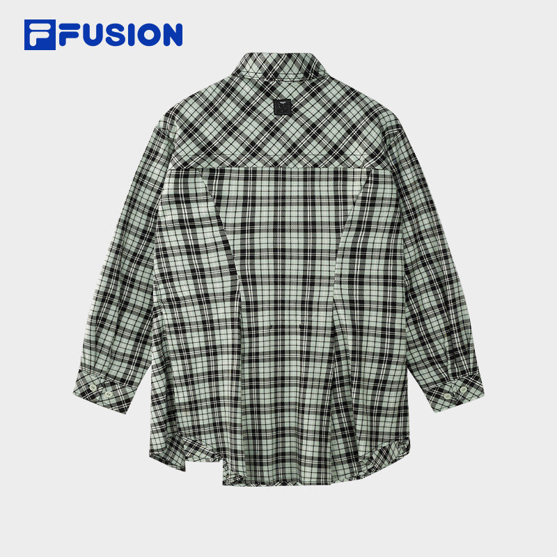 FILA FUSION斐乐潮牌女装上衣2026春新款时尚宽松不规则格子衬衫