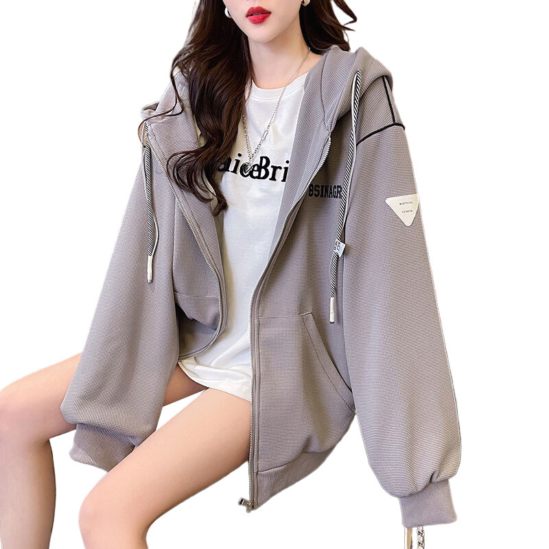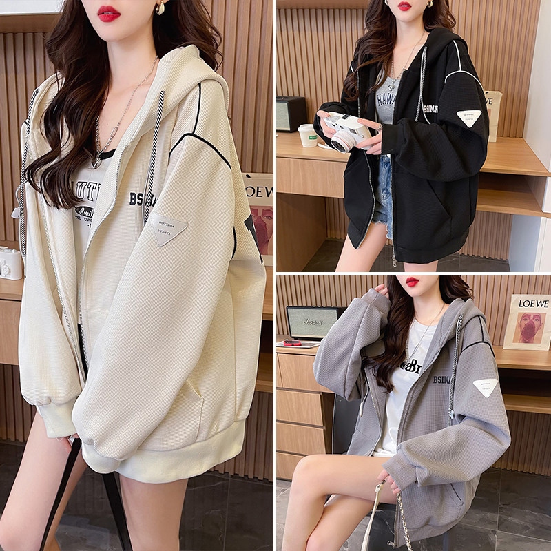 学院风开衫外套少女春秋2026新款初中高中学生宽松慵懒风连帽卫衣