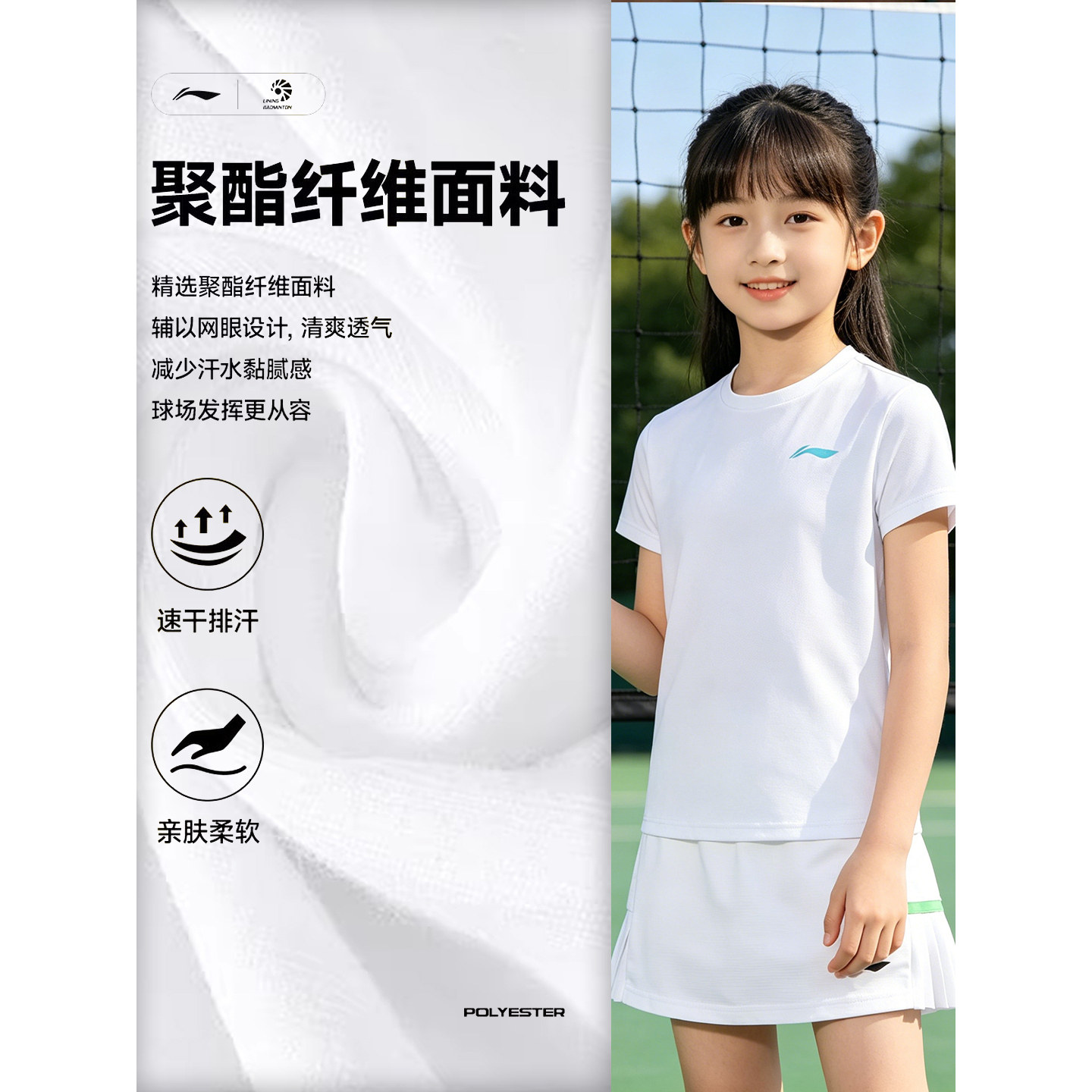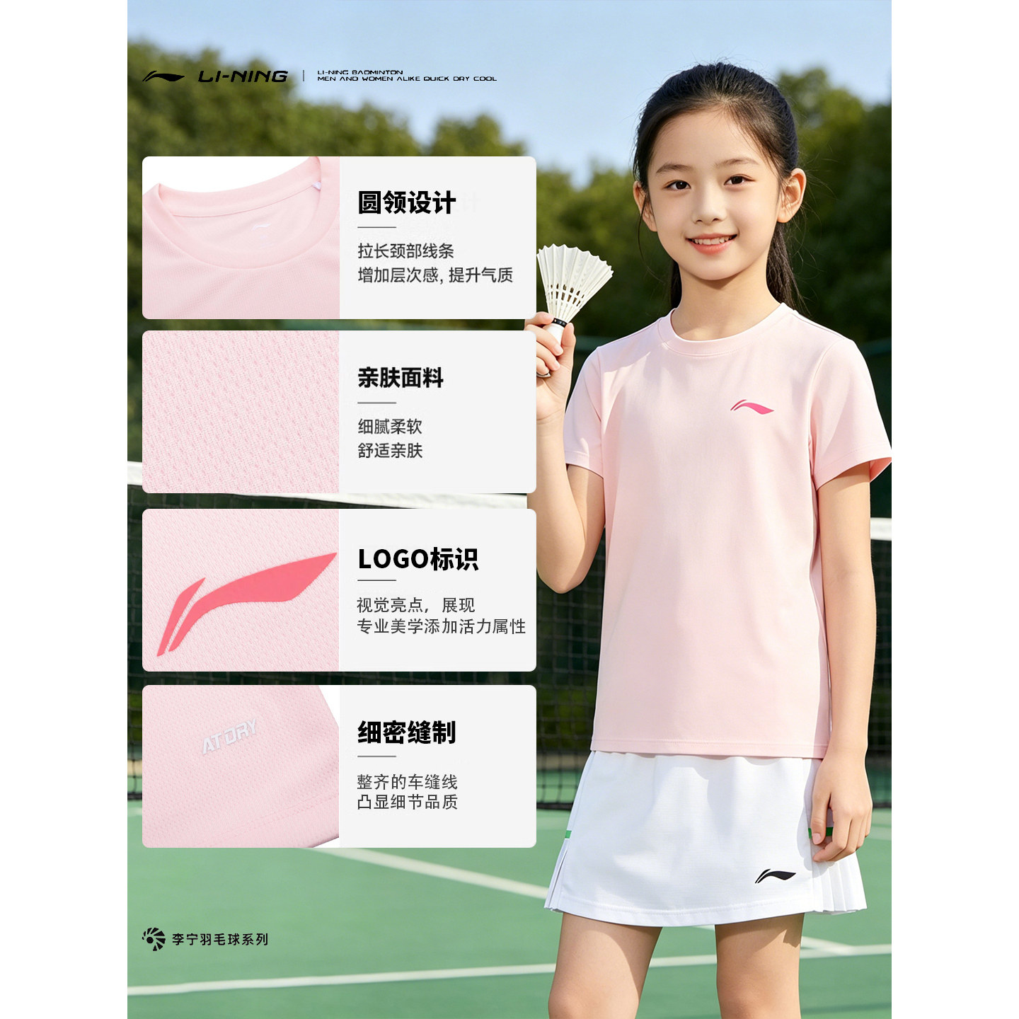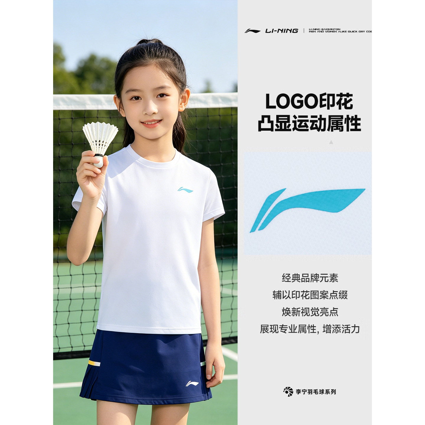 李宁羽毛球服女童2026新款比赛学生高颜值短裙T恤运动套装运动服