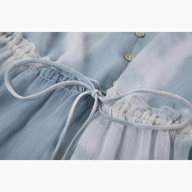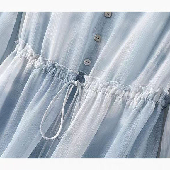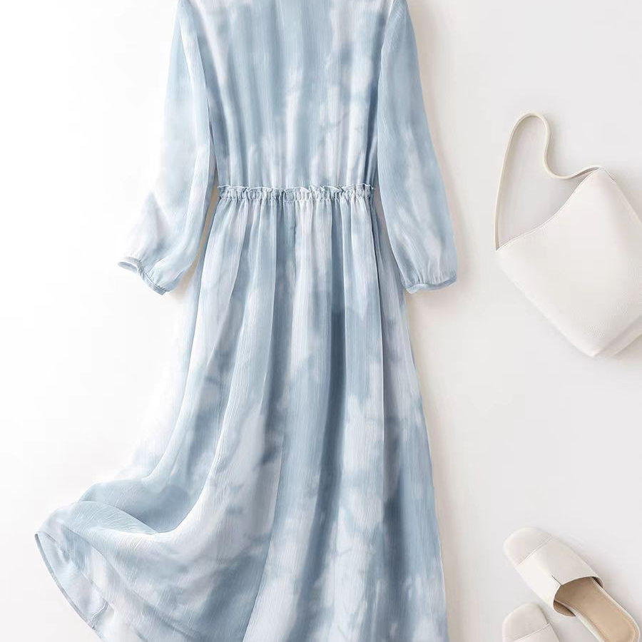 法式超好看精致雪纺连衣裙女夏天温柔风高端中长款长袖修身长裙子