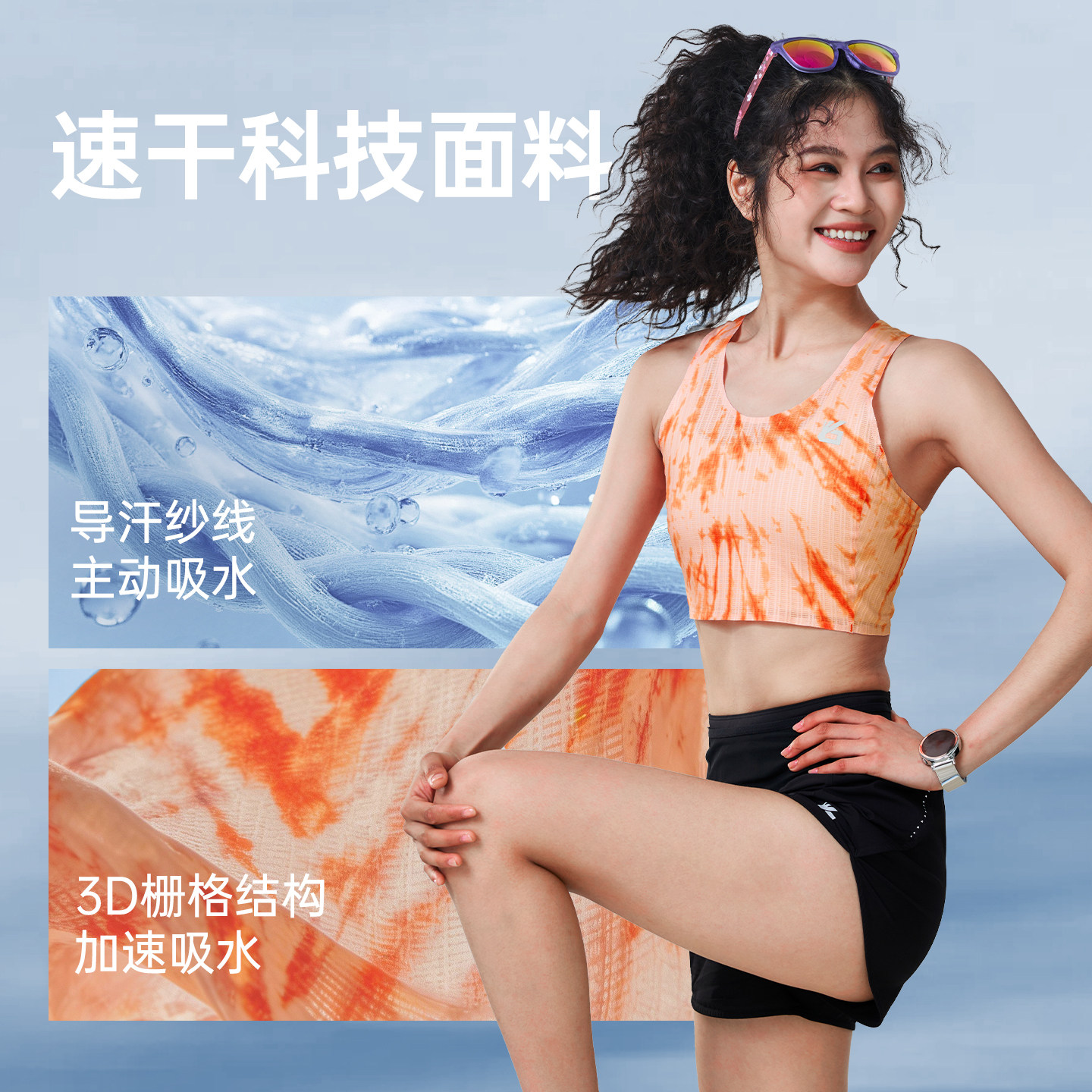 悦步紧身短款背心扎染色系高弹透气马拉松跑步女风洞无袖背心外穿