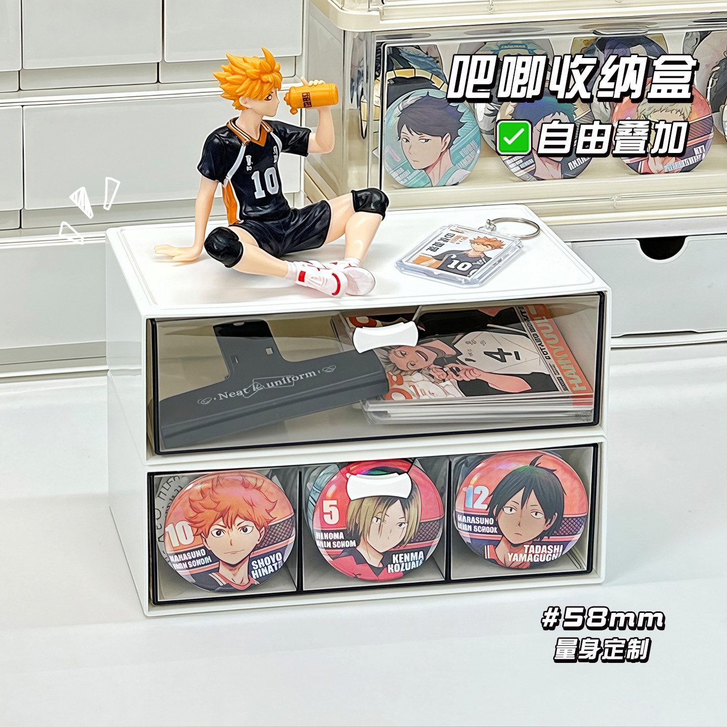 吧唧收纳盒抽屉式桌面谷子徽章整理盒大容量痛桌放小卡周边展示盒