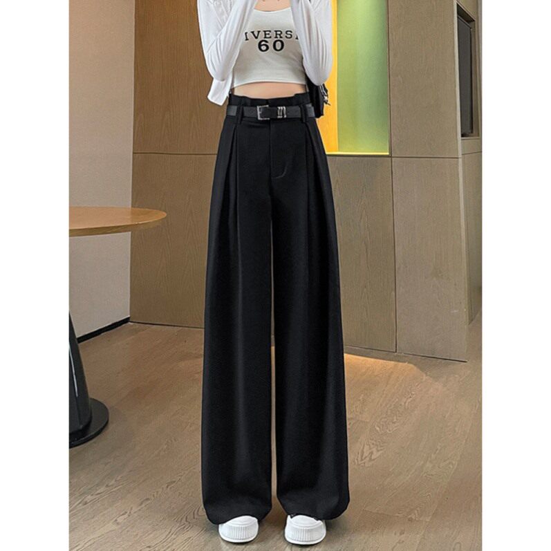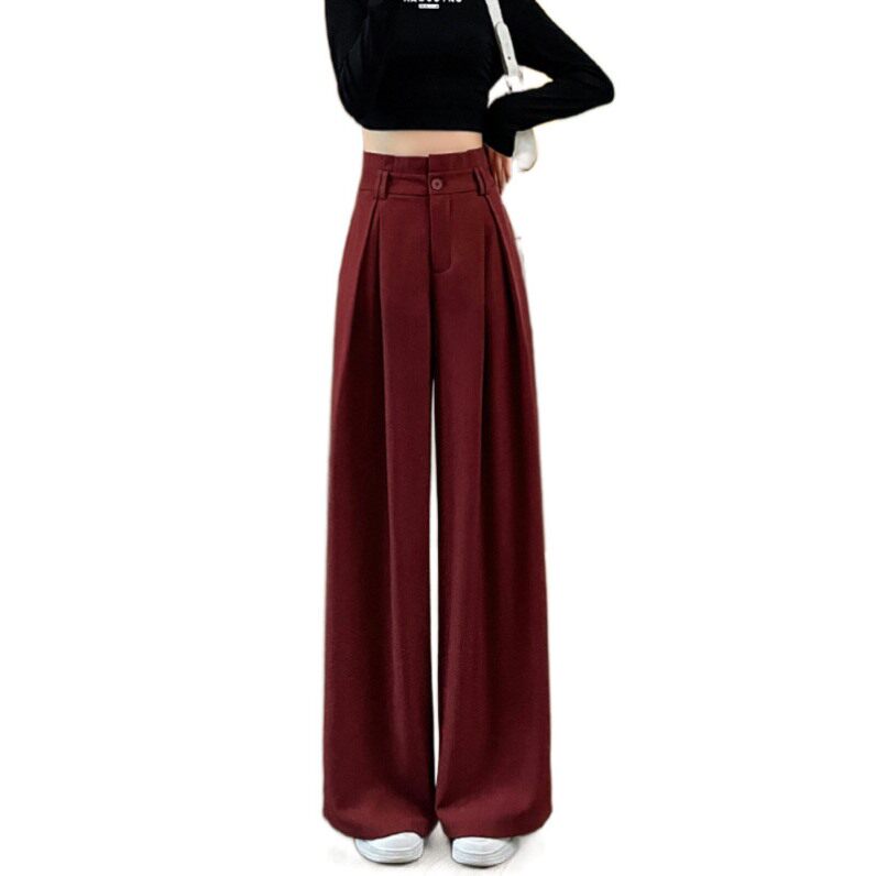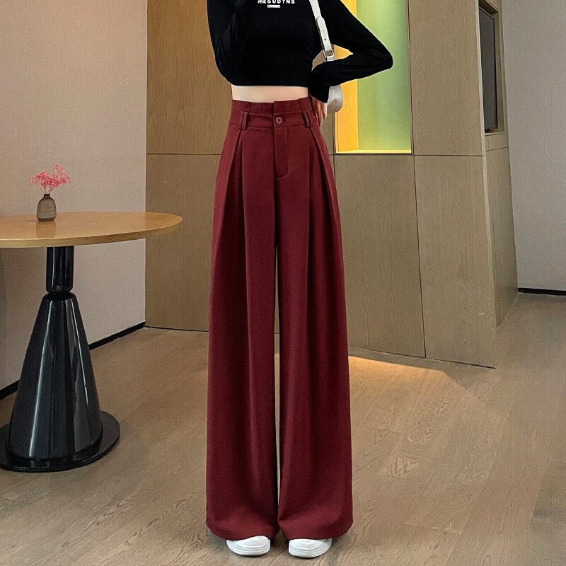 裤子女款女春秋新款高腰垂感梨形身材窄版酒红色高级感西装阔腿裤
