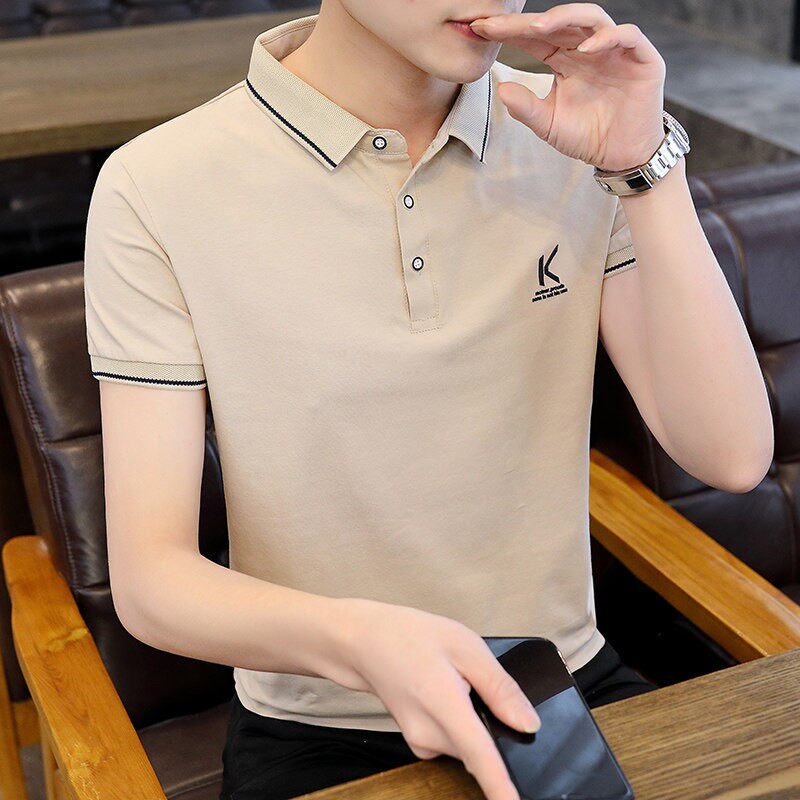 短袖男纯棉翻领polo衫男夏季穿搭衬衫领冰丝t恤重磅夏天上衣服潮
