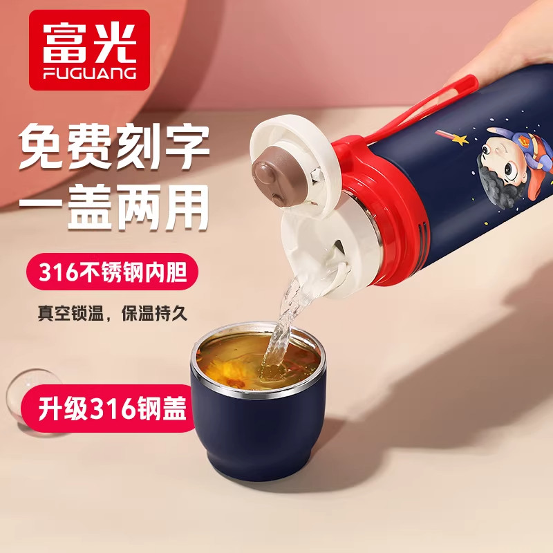 富光儿童保温杯男女孩便携式高颜值316L水杯小学生上学专用刻字杯