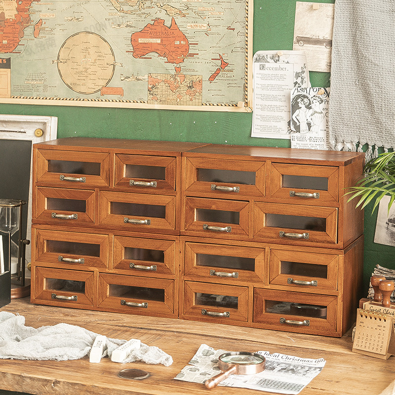 复古高档实木制收纳柜桌面抽屉式收纳盒化妆品多层置物架首饰盒子