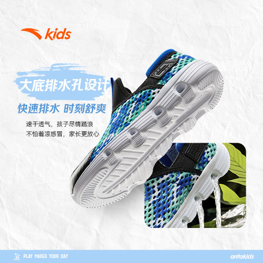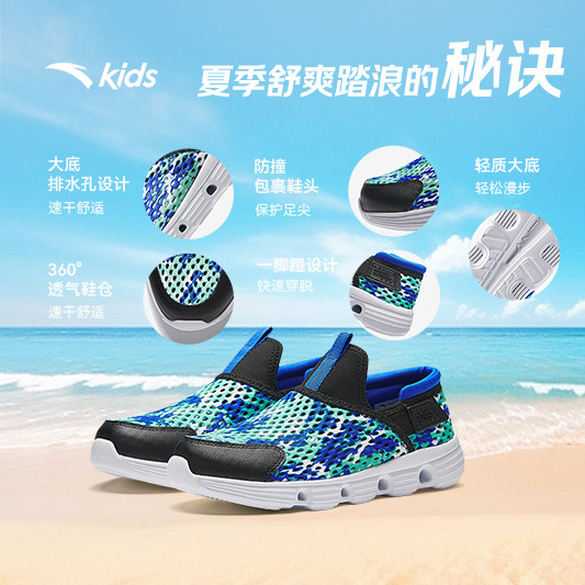 安踏儿童凉鞋男孩2026年新夏季网面一脚蹬大童软底女童沙滩运动鞋