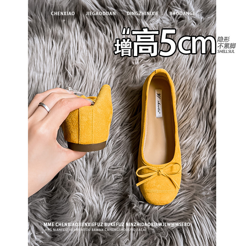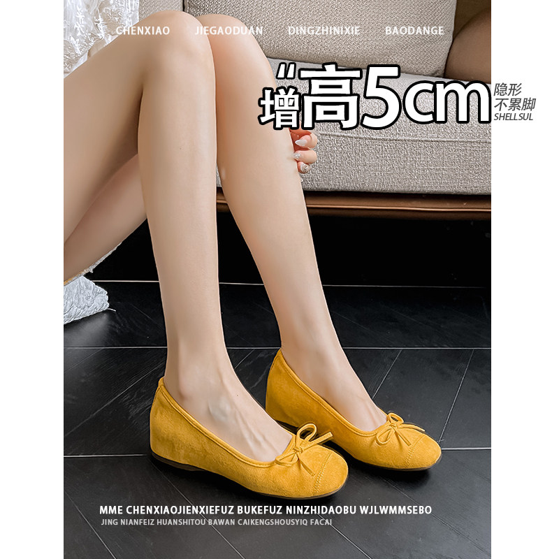 不累脚!隐形内增高5CM2026春夏浅口蝴蝶结小个子温柔玛丽珍单鞋