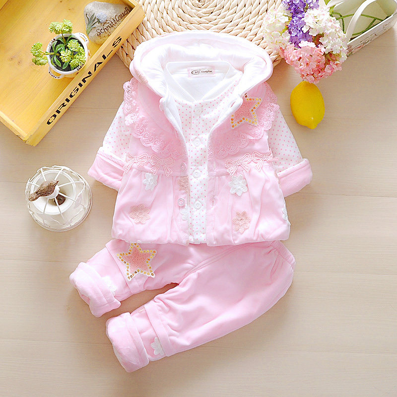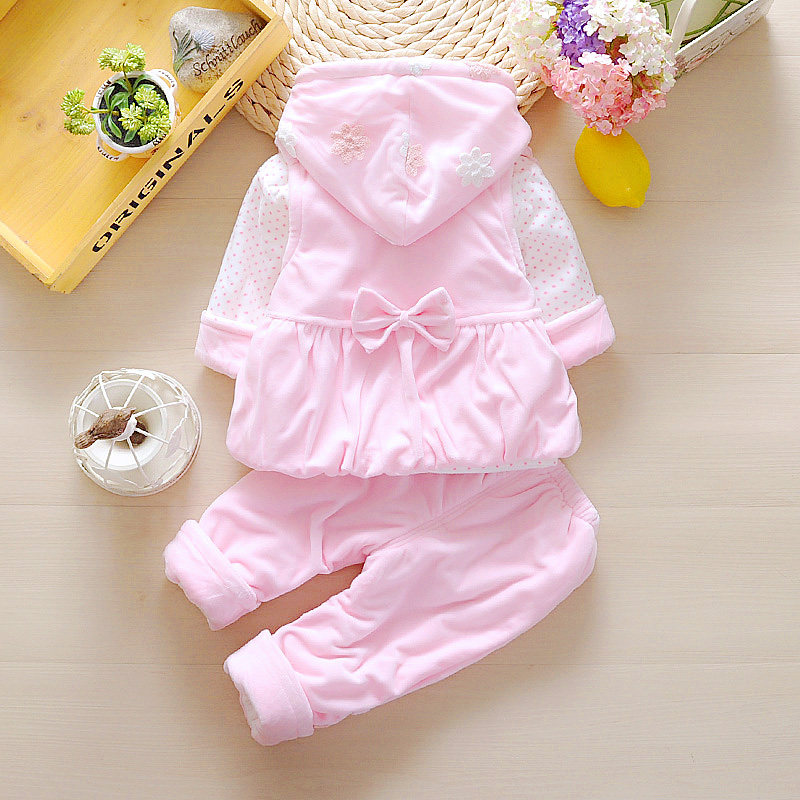 女宝宝冬装夹棉套装01一2岁3新生婴幼儿童装衣服秋季棉衣三件套装