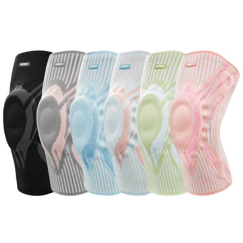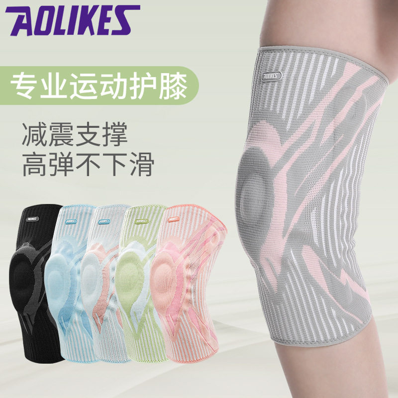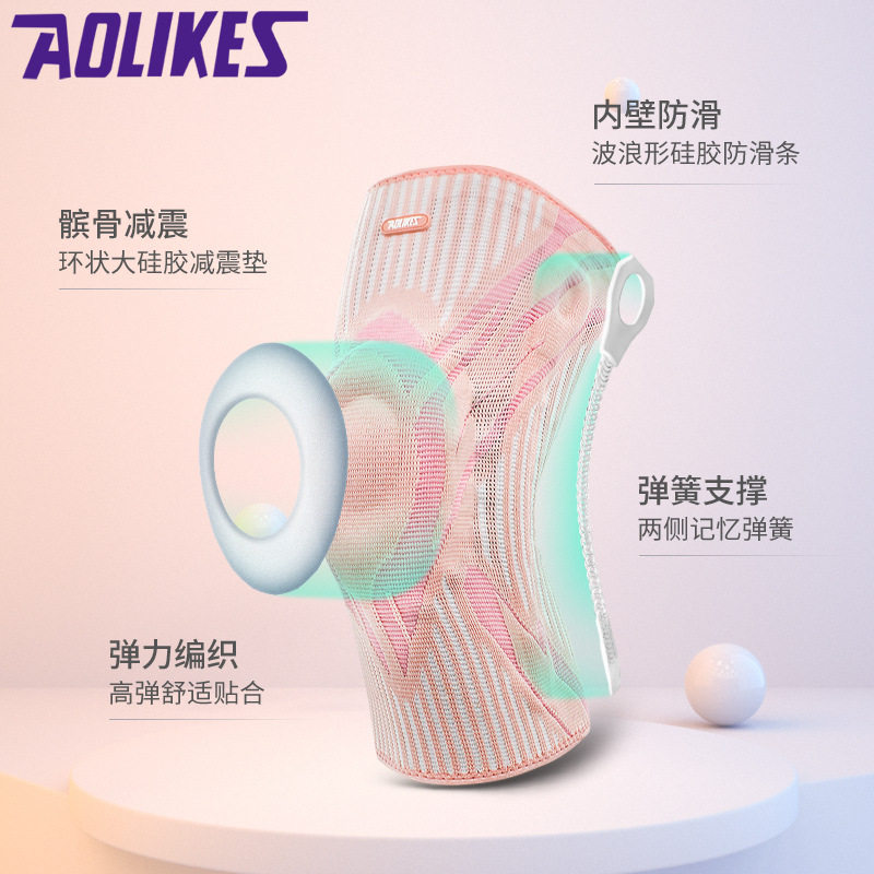 针织运动护膝 弹簧支撑跑步硅胶减震防滑户外骑行健身登山护腿套