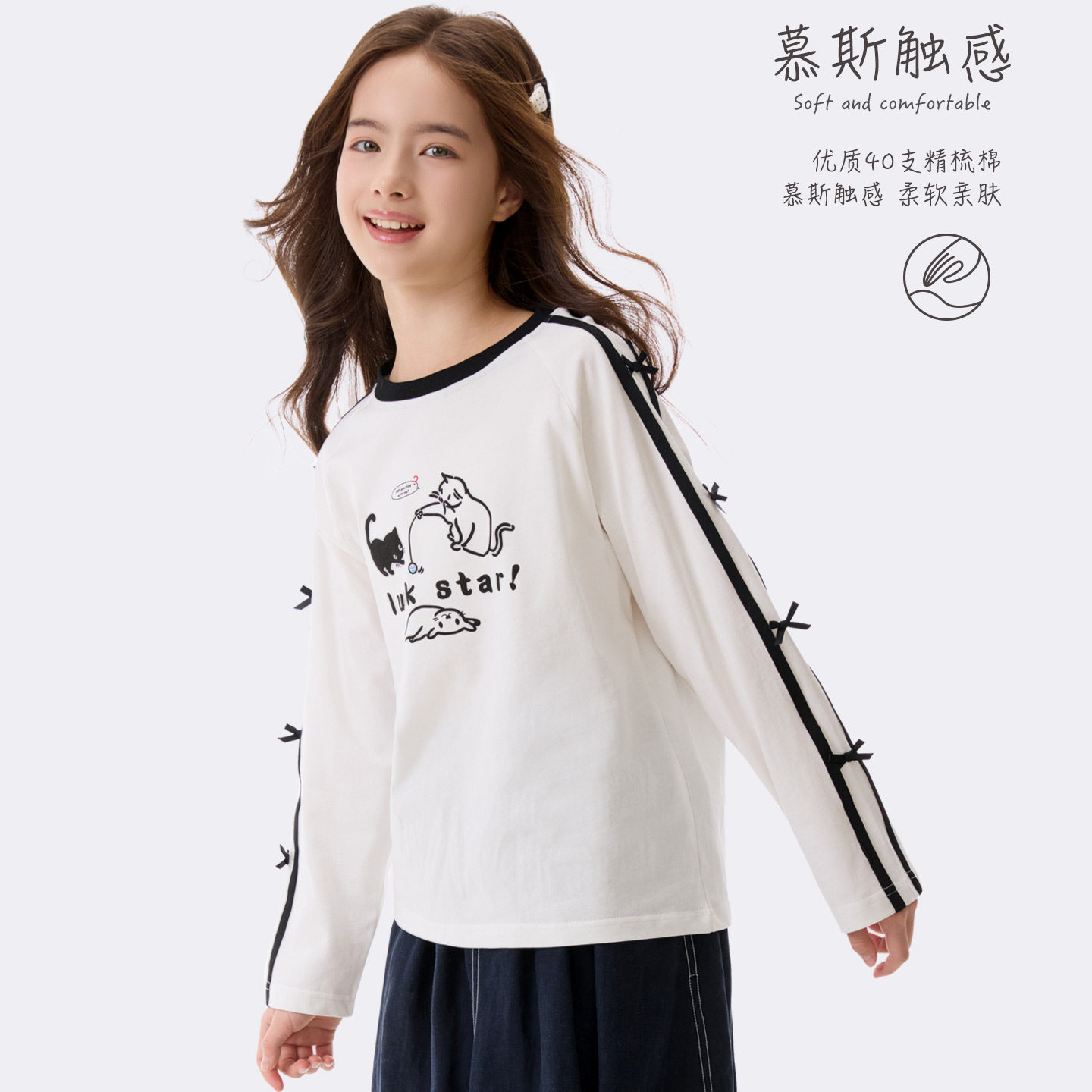 女童长袖T恤春装新款儿童纯棉打底衫中大童青少年洋气上衣春秋装
