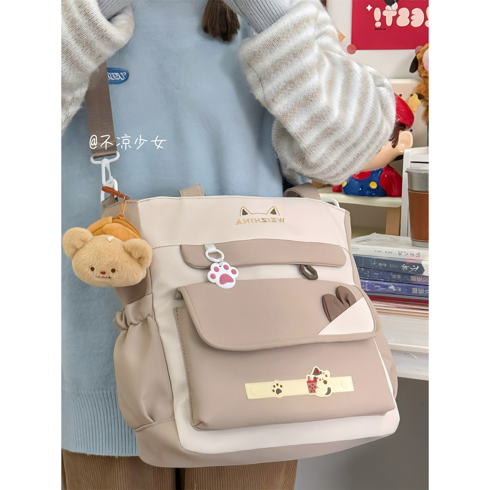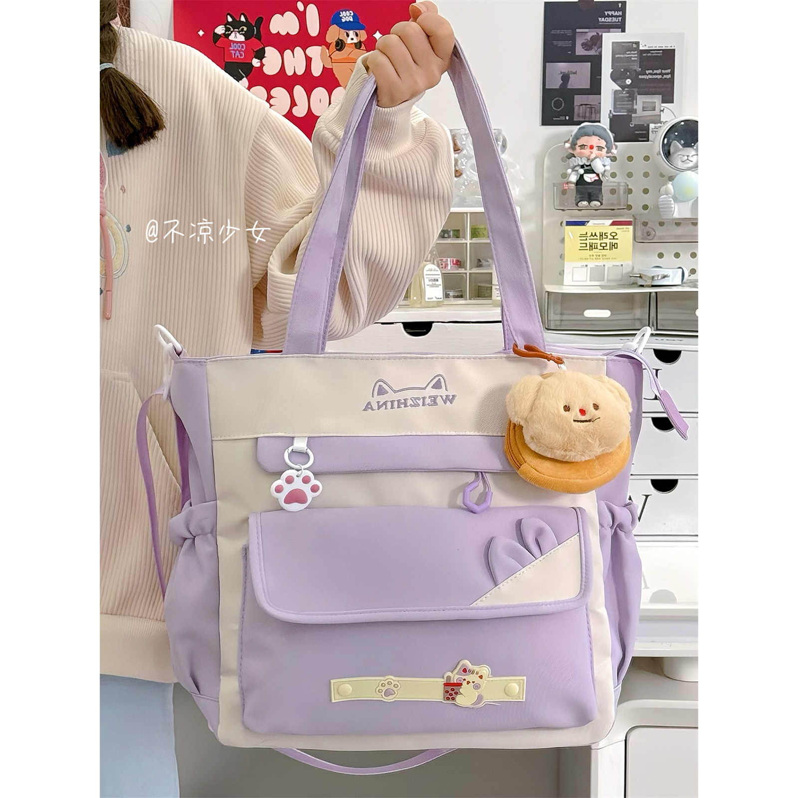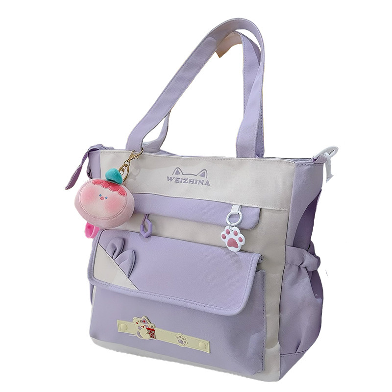可爱猫咪大容量斜挎包高颜值小清新少女单肩托特包学生上课补习袋