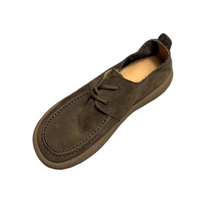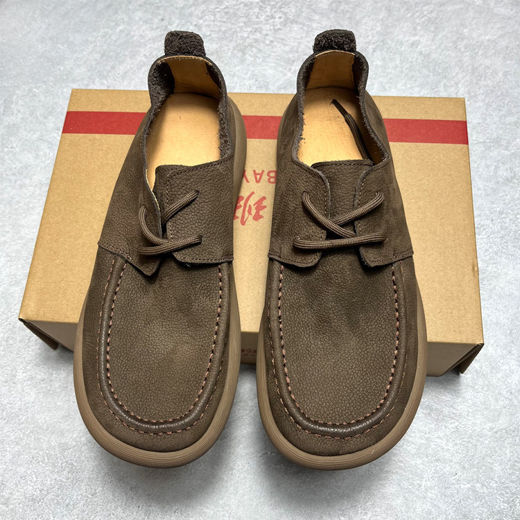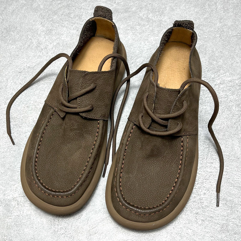 春夏新款单层牛皮透气休闲皮鞋男款真皮英伦复古软底宽脚大头男鞋