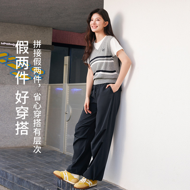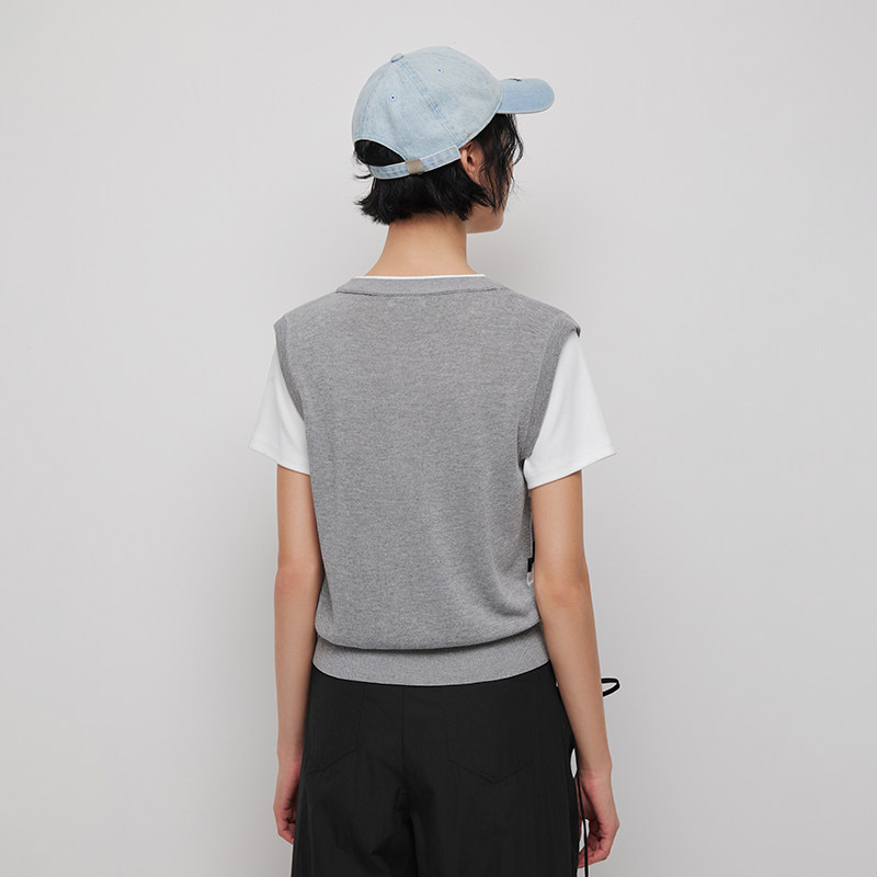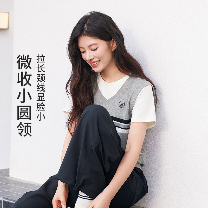 热风女士短袖针织衫上衣2026年夏季新款刺绣假两件针织衫韩系短袖